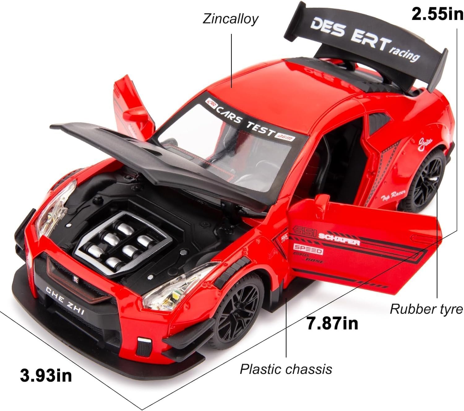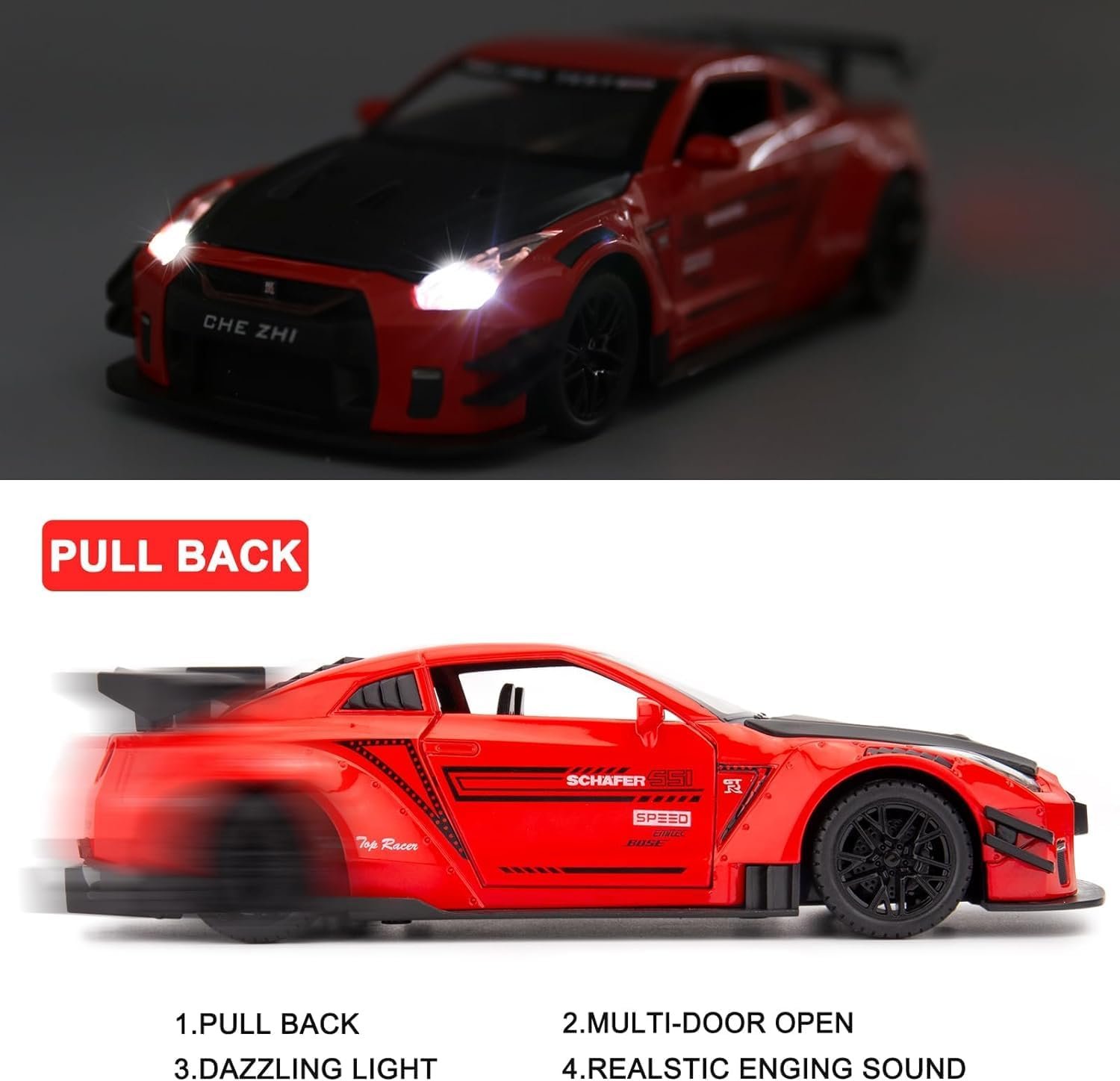 1:24 Scale Compatible for Nissan GTR Model Car Toy, Zinc Alloy Pull Back Toy Car with Sound and Light for Kids Boy Girl Gift/Red – Color