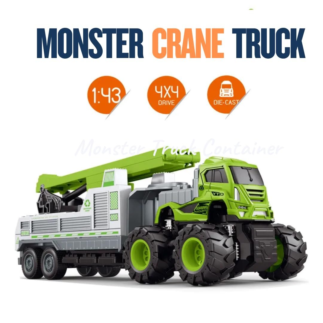 1:43 Scale Monster Truck Crane – Durable Crane Toy for Kids with Movable Parts – Realistic Dumper Truck Toy for Play & Display – Ideal Gift for Ages 3+