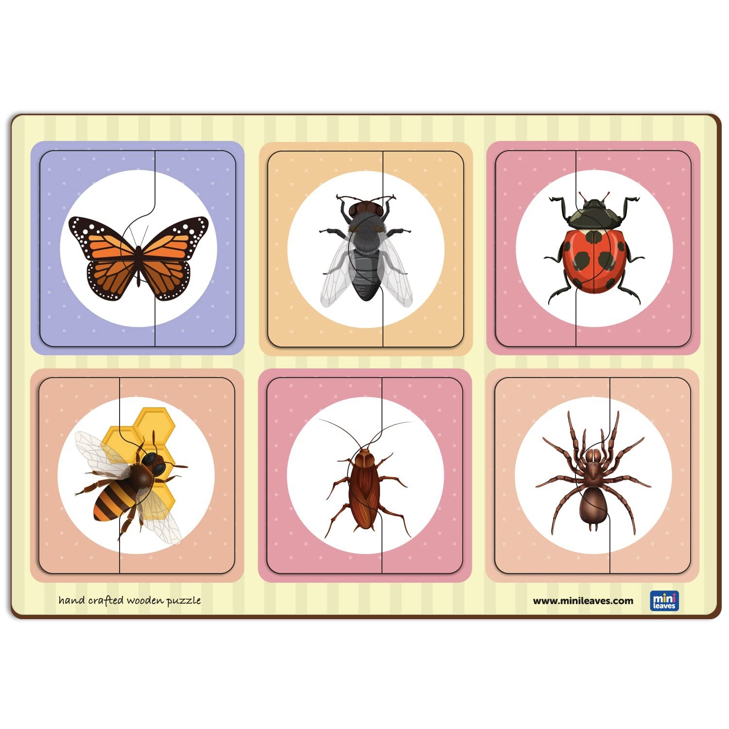 2 Piece Insects Wooden Jigsaw Puzzle – Educational Kids Toys for 2-5 Years Boy, Child Safe, Durable, Vivid Insect Images, Zero Plastic, Picture Matching, Engaging Preschool Toys