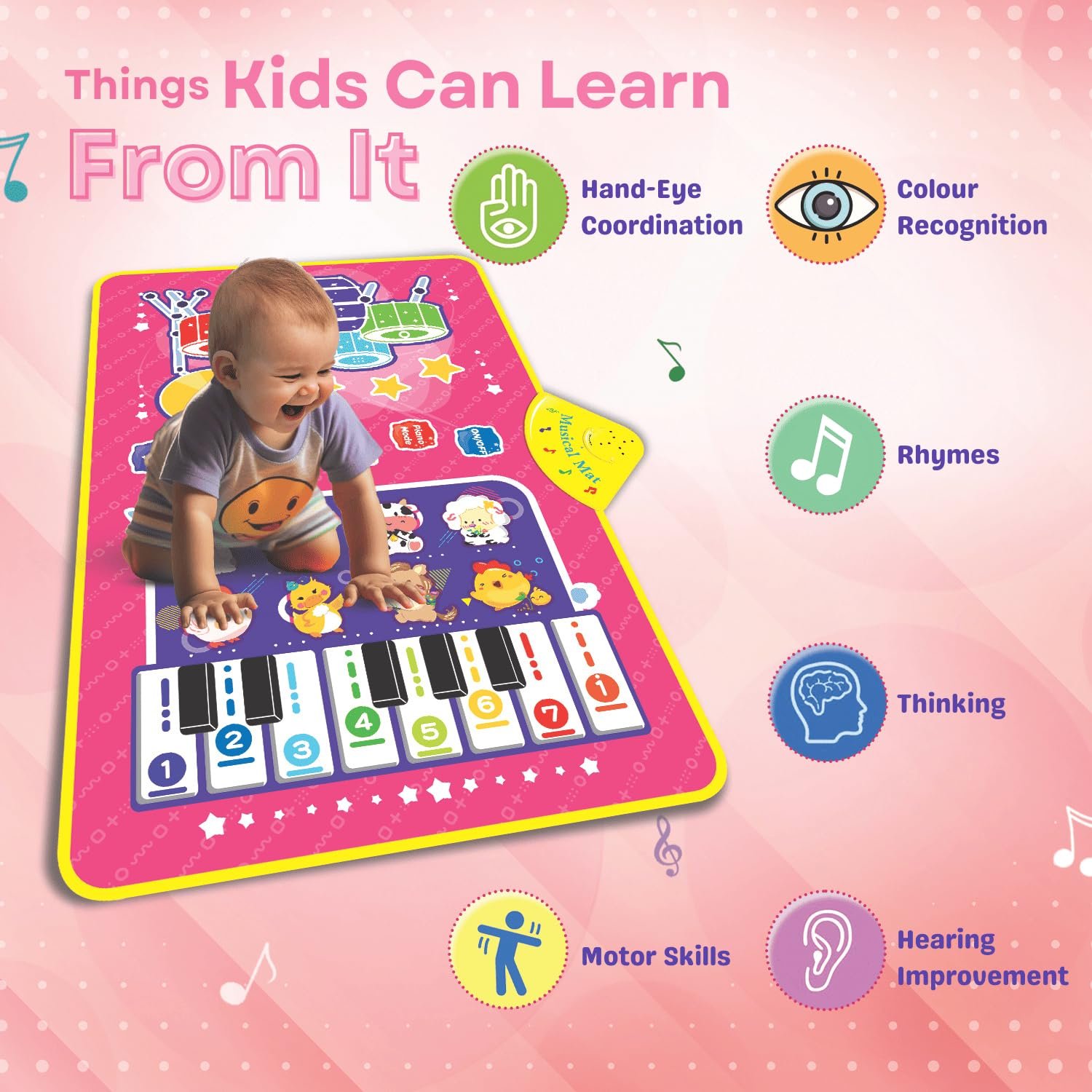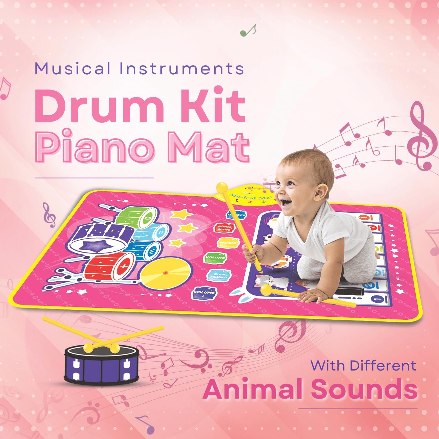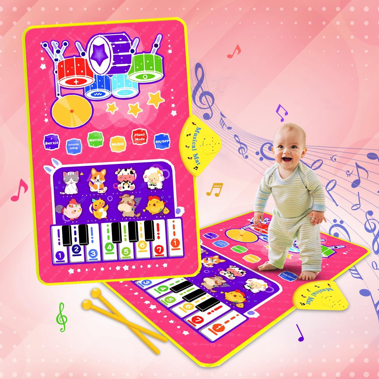 【INTERACTIVE & FUN FOR MULTIPLE KIDS】 With a vibrant pink design and engaging features, this musical play mat encourages active play. The dual play feature allows two children to enjoy together—one on the piano and the other on the drum—making it an excellent choice for siblings, twins, or family fun.