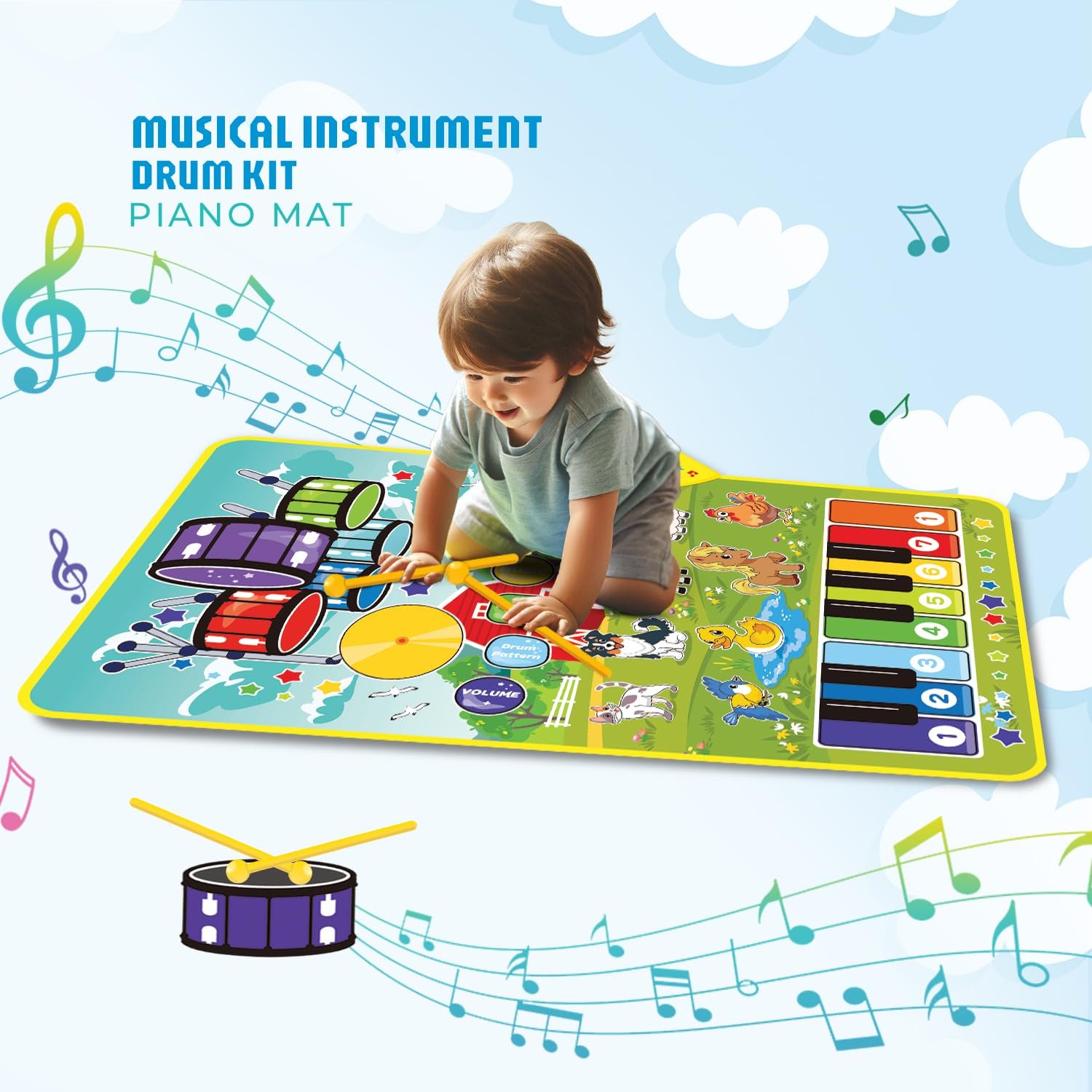 【INTERACTIVE AND ENGAGING】Featuring a vibrant design and interactive elements, this musical play mat inspires kids to actively engage and express their creativity through music. The 3-in-1 setup with an Animal sounds, piano and a drum allows two children or players to enjoy together—one on the piano and the other on the drum—making it perfect for siblings, twins, or family fun.
