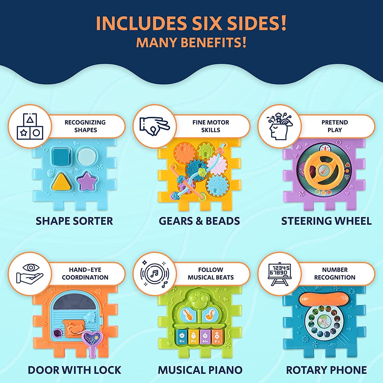 【Safe and Friendly】 – High quality ABS plastic material, environmentally friendly, safe and non-toxic. Smooth design, strong shock resistance protect children\’s hands. which is safe baby toys for 6-12 months.The music side requires 3×1.5V