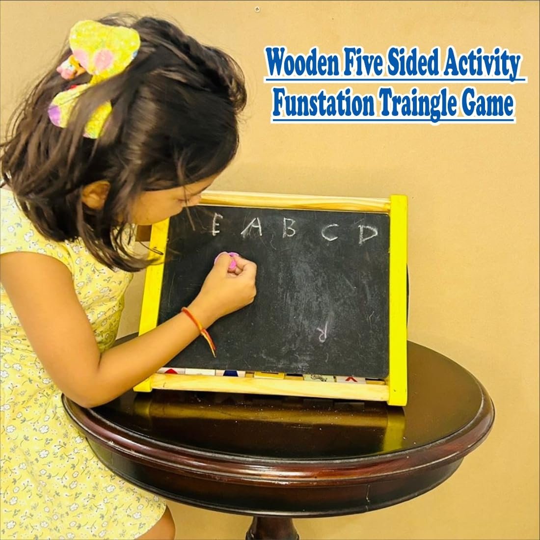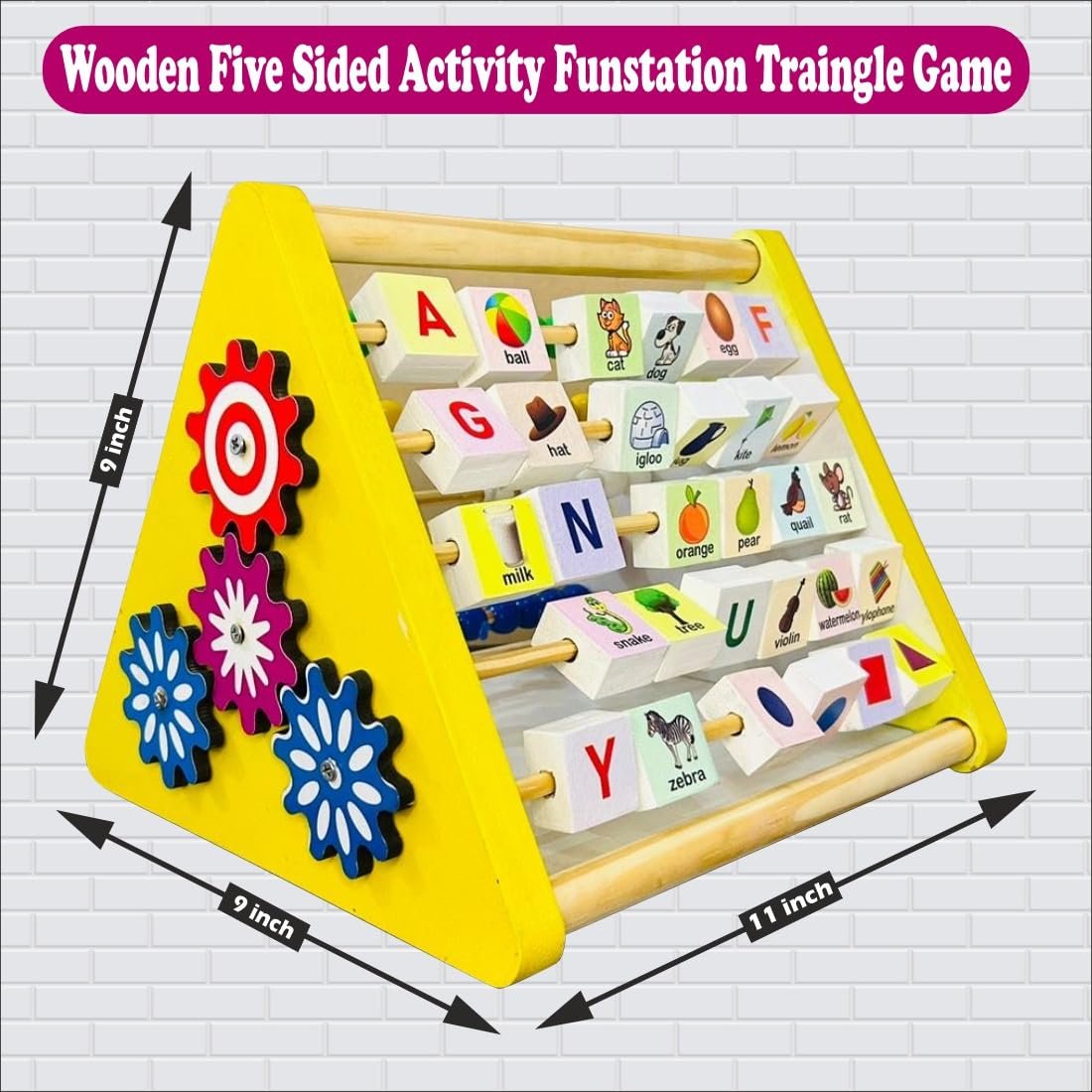5 in 1 Activity Triangle Center Cube | Alphabet Blocks Abacus Clock Writing | Counting Beads Assembly Toys for Kids Montessori Learning Toy for 1-5 Year Old Kids (Activity Triangle Game)