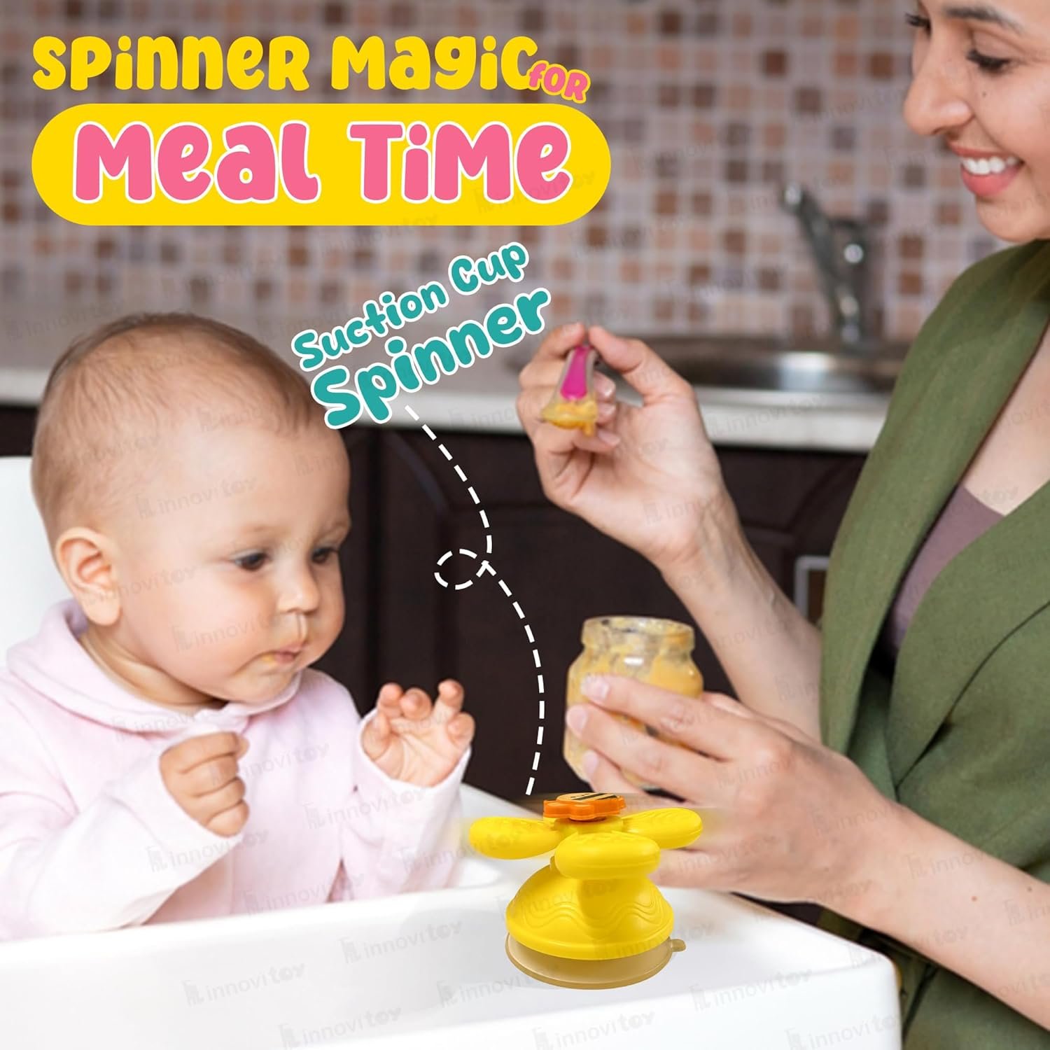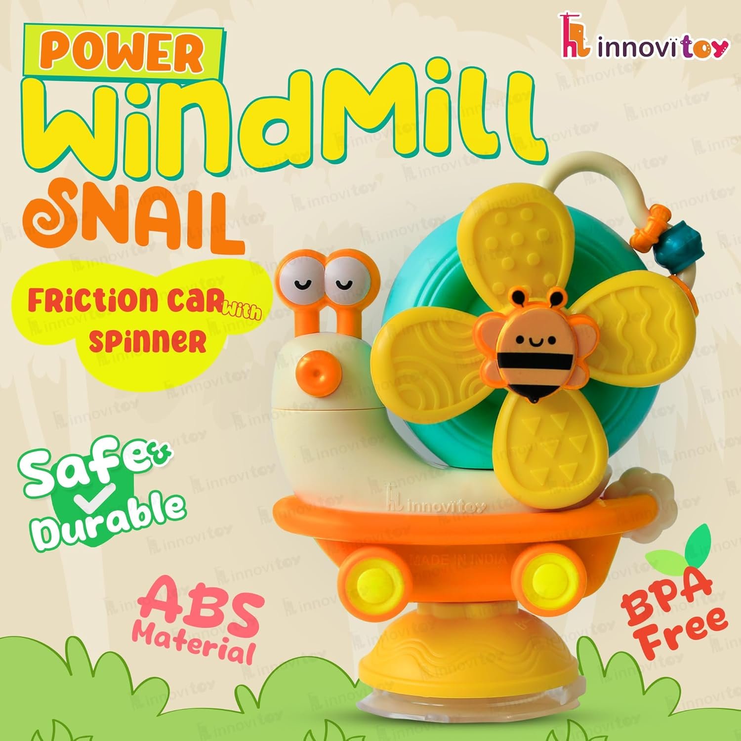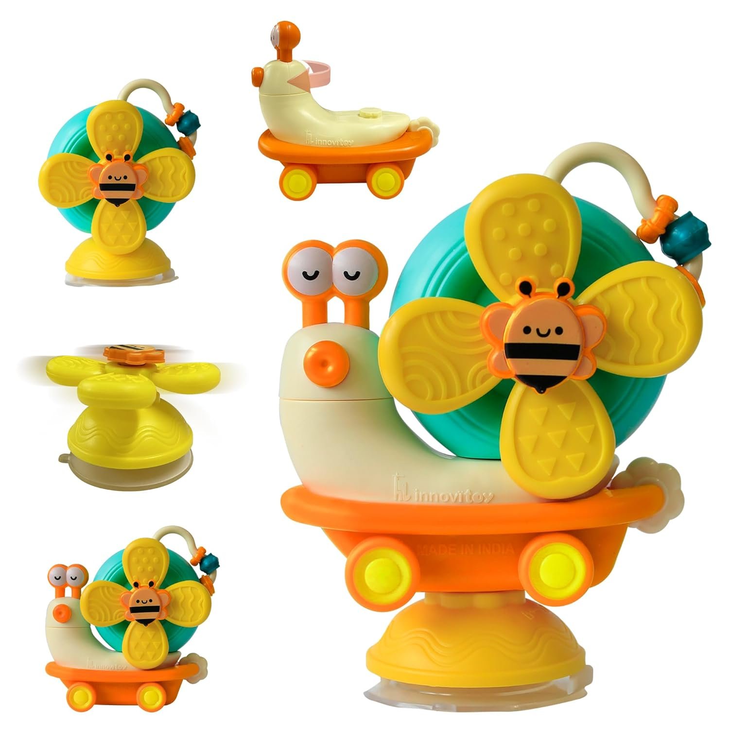 5 Modes of Play Yellow Snail Spinner Toy for Baby 0-3 Years – Convertible Friction Powered Baby Toy Car – Sensory Toys for Kids with Suction Cup Base – Perfect Baby Gift Set – Made in India