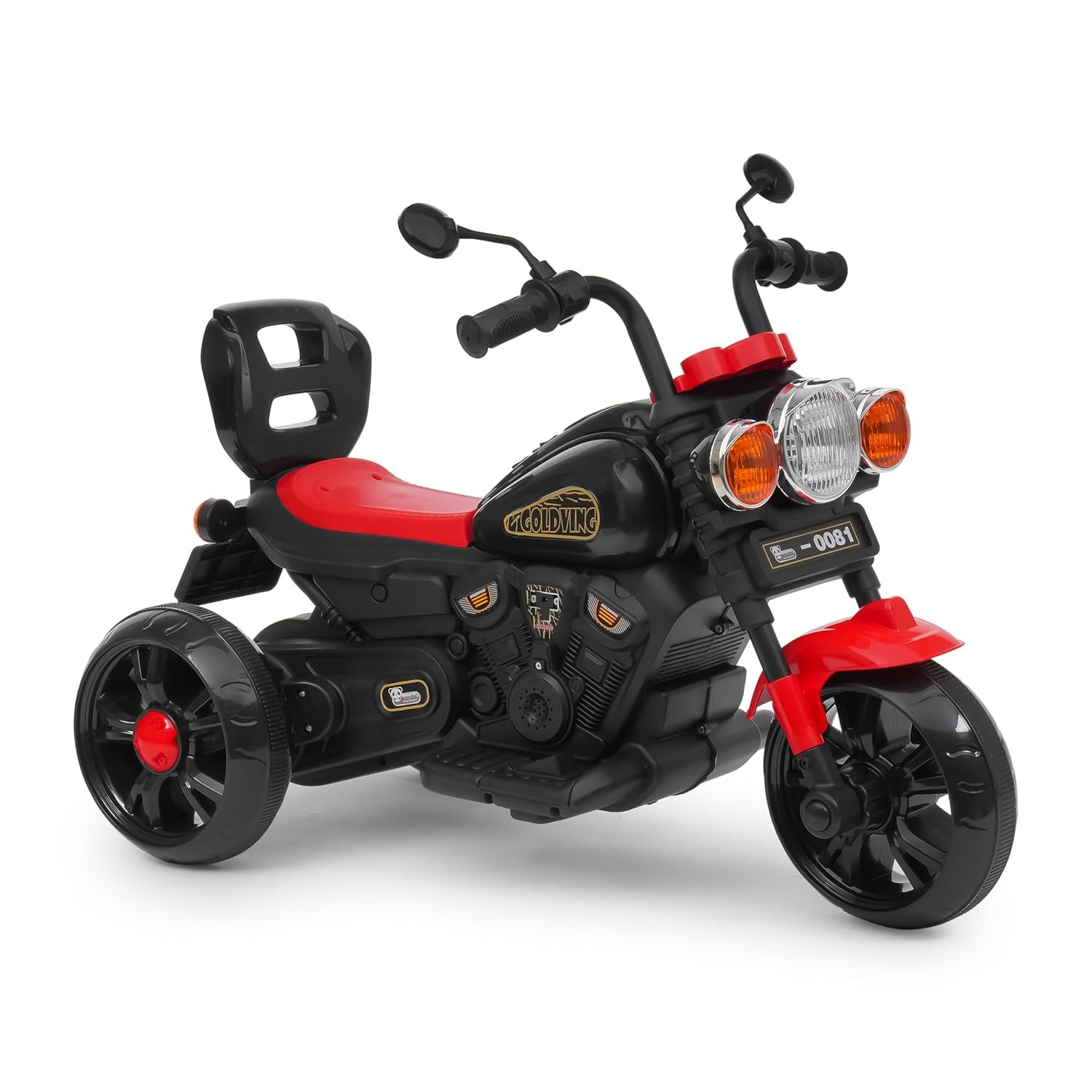 6V Electric Kids Bike Rechargeable 6.5 Ah Battery Inbuilt Imported Motor Drive Music Player LED Light & Foot Accelerator for Ages 1-6 Years (Goldving Electric Bike, Red & Black)