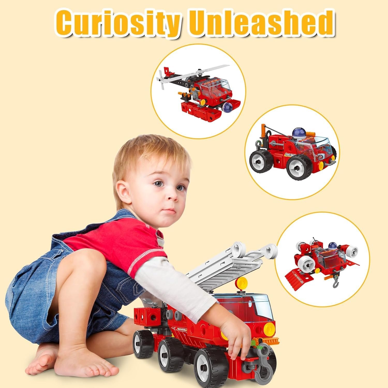 7 in 1 STEM Toys for 3 4 5 6 7 Year Old 159PCS Fire Truck Toy for Kids Educational Science Kits for Boys Age 5-7 6-8 Engineering Learning Toys_18