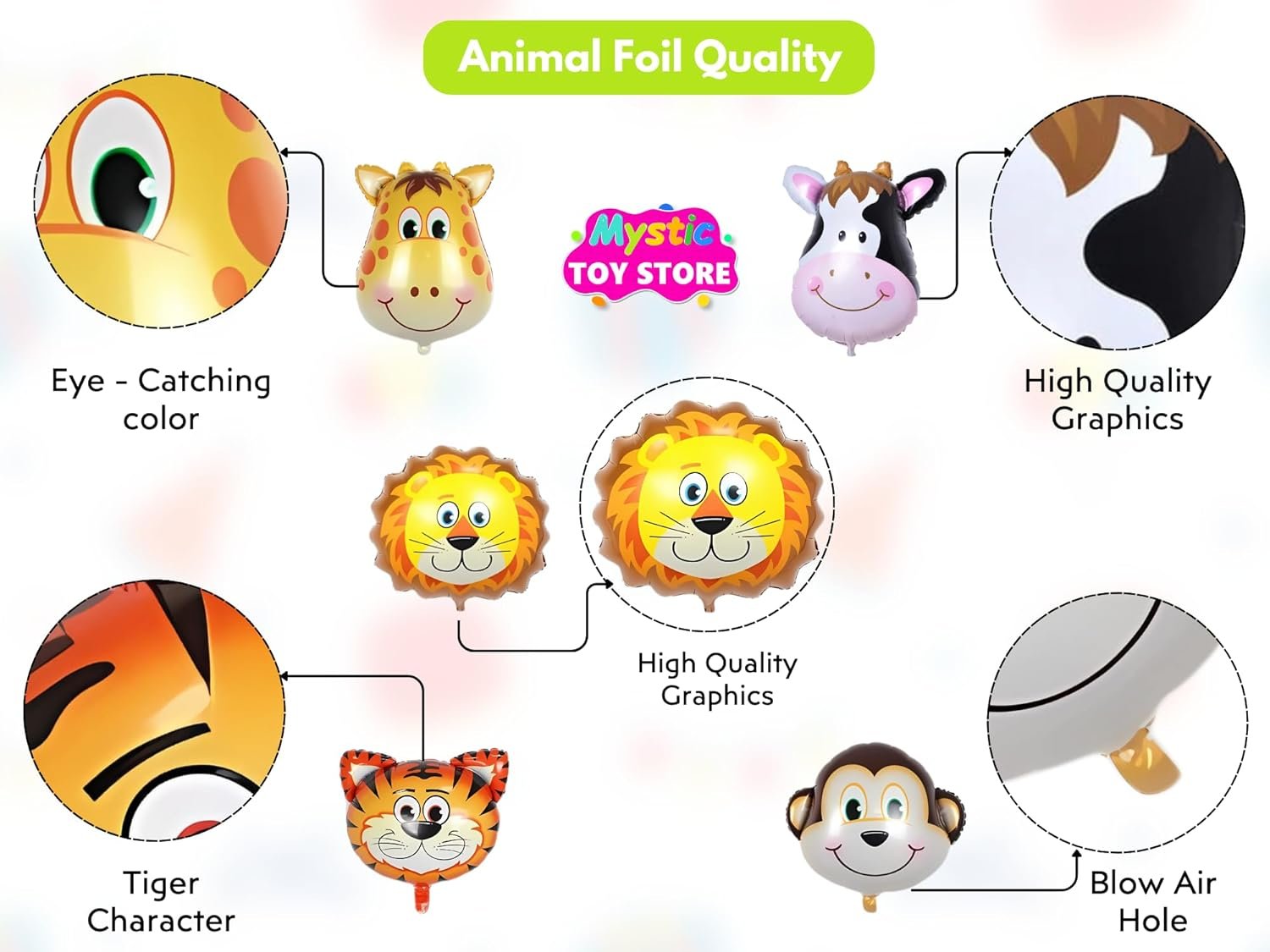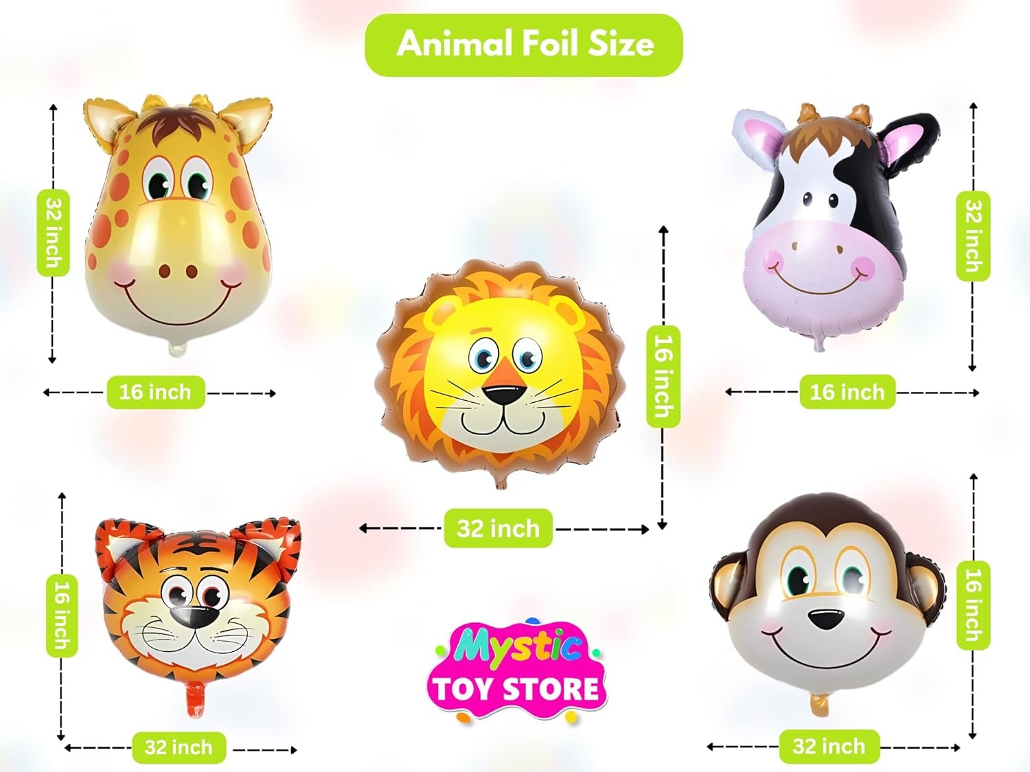 5 Pcs Animal Foil Balloon – Giraffe, Tiger, Lion, Monkey, Cow