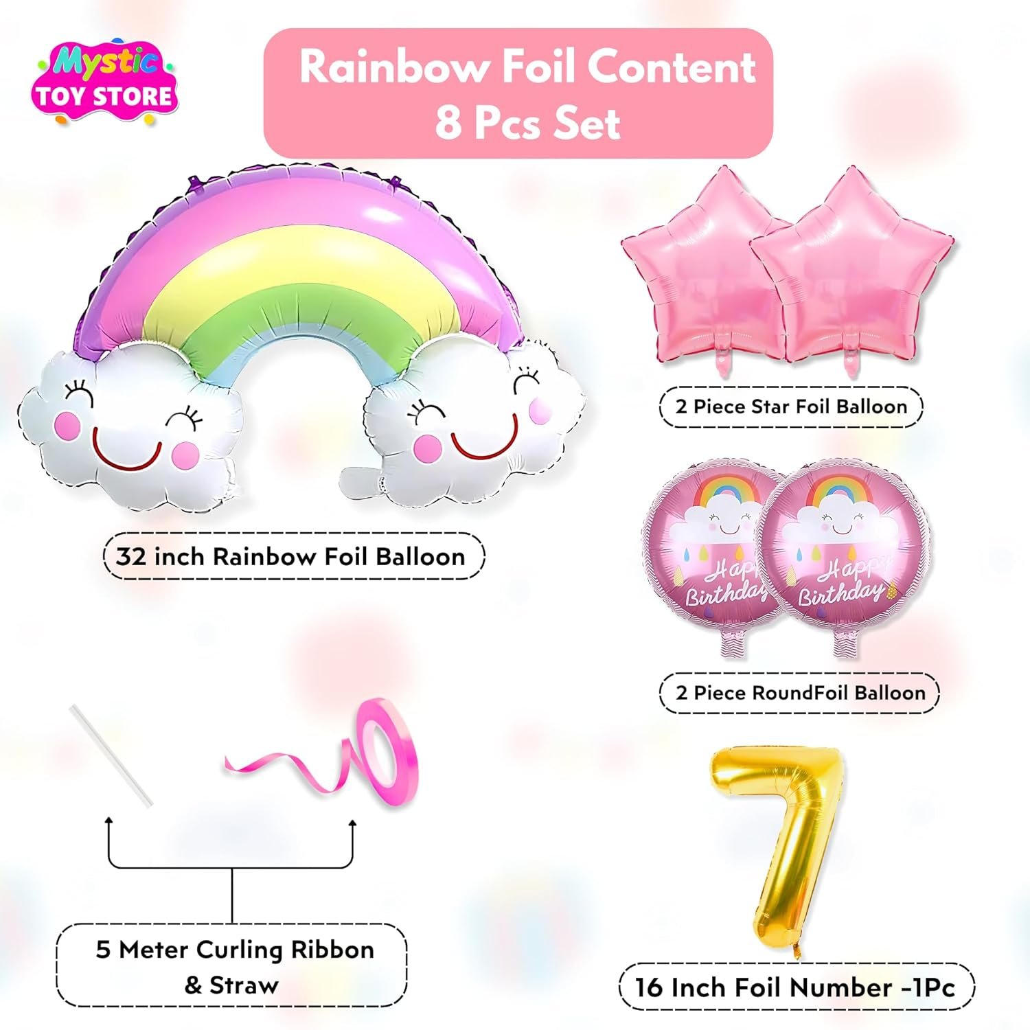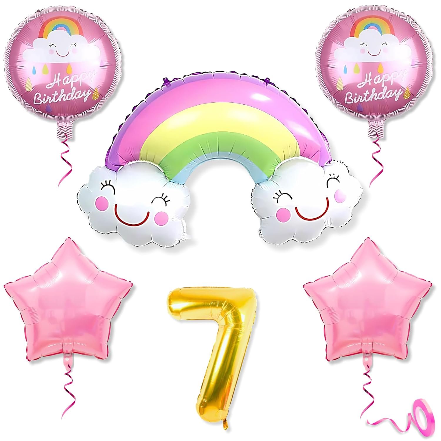 7th Rainbow Balloons for Birthday Decoration Kit Multicolour 7 year Baby Boys Girls Kids 5 Pcs Rainbow Theme Foil Balloons Decoration Set Items 2 Pcs Pink Star
