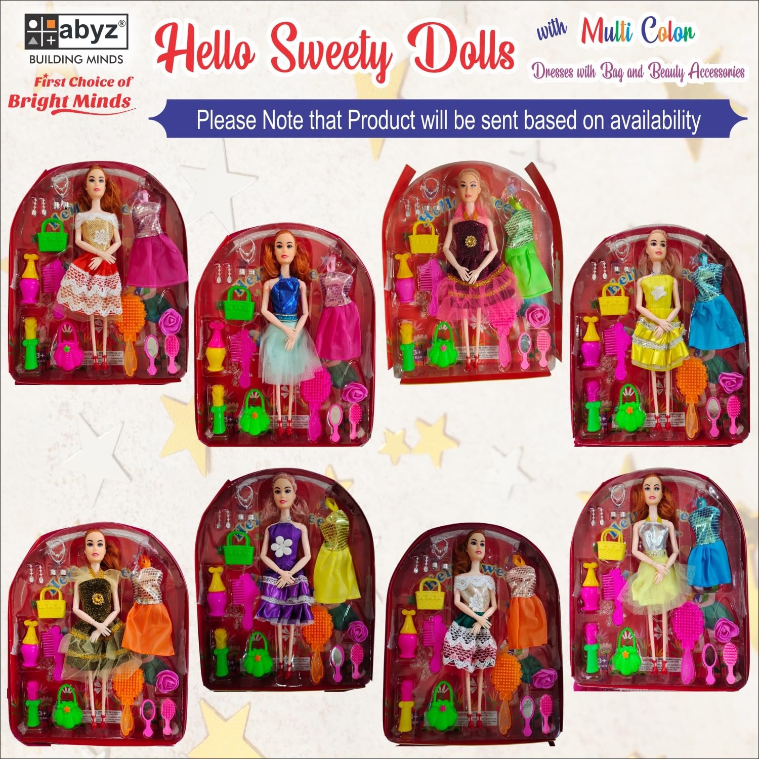 Abyz Hello Sweety Fashion Doll Set with Beauty Accessories, Black Dress and Handbag, Girls Toy Age 3-5 Years, Multicolor