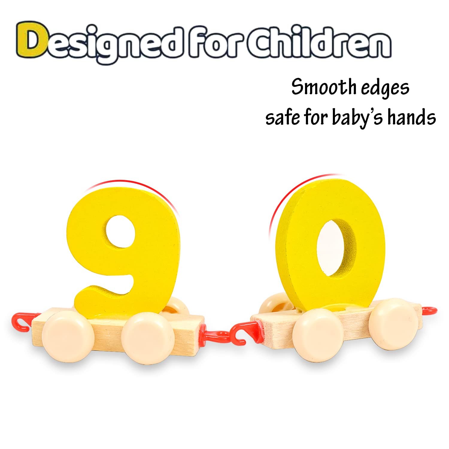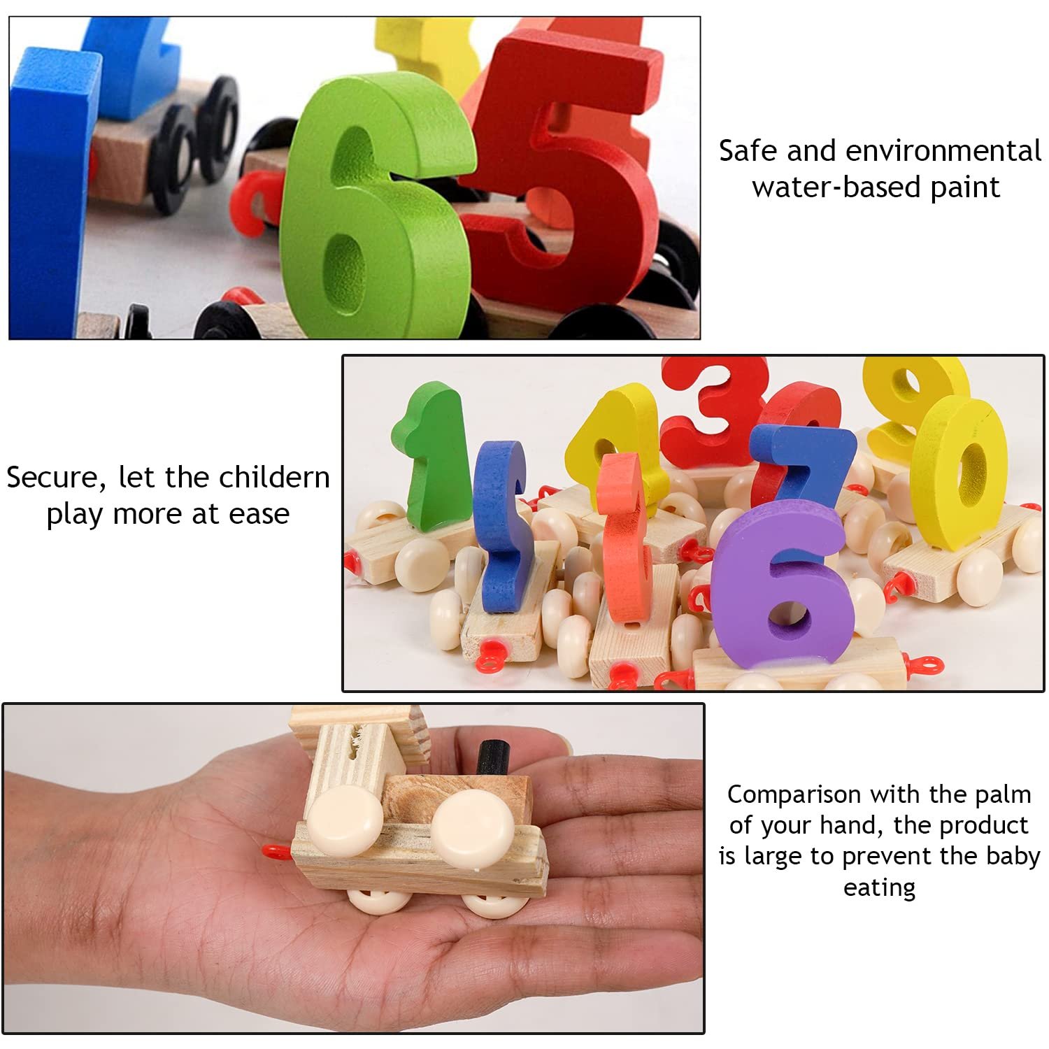 Best digital wooden train. This long digital train has a train head, a train tail and ten small wooden trains with colorful 0-9 figures on top. Each train has 4 sliding wheels which glide easily. It is well-constructed, durable and very easy to assemble