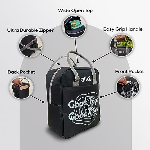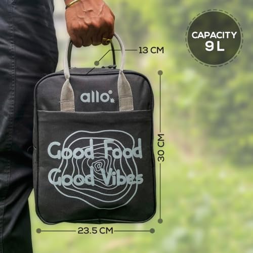 Allo Lunch Bag for Office, School & College, Washable Unisex Tiffin Bag for Men, Women & Kids, Lightweight, Leakproof, Water and Dust Resistant Multipurpose Lunch Bag, Grey (GFGV), 9 litres