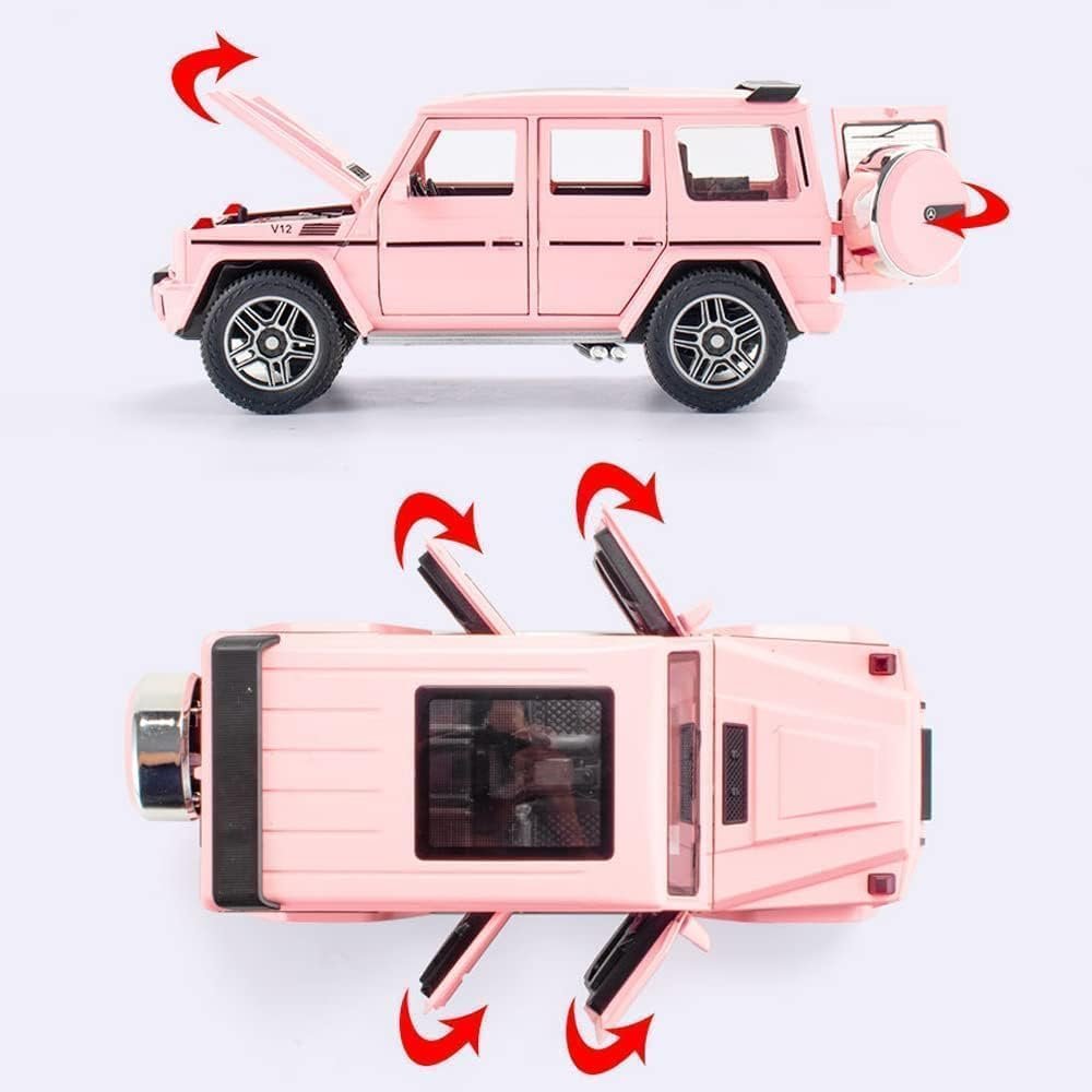 Alloy Metal Pull Back Die-cast Car 1:24 Big Mrcedes AMG G63 G-Klessa Diecast Metal Pullback Toy car with 6 Openable Doors & Light, Music Boys Gifts Toys for Kids(Pink)