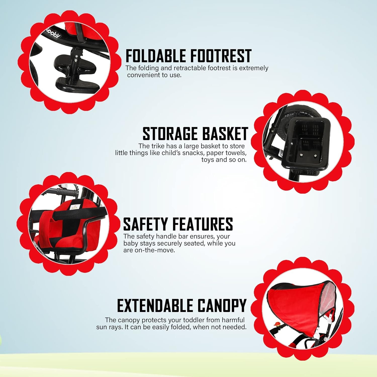 Amardeep and Co Baby Tricycle Sunshine with Safety Armrest, Parental Control and Canopy (1-5 Yrs) – Red