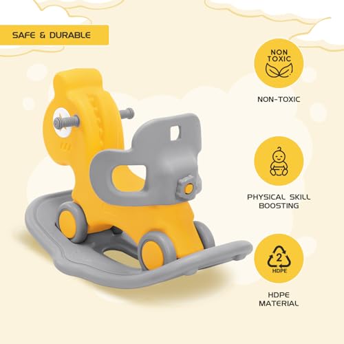 Amazon Brand – Jam & Honey 2-in-1 Giraffe Ride on and Rocker | Non-Toxic PE | Durable & Safe | BIS Approved | Babies 12 Months – 4 Years