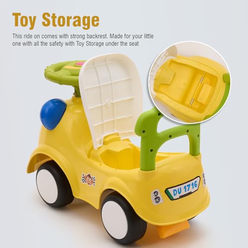 Amazon Brand – Jam & Honey Ride-on Car for Kids | for 24+ Months | Push Car with Backrest | Under Seat Storage | Indoor or Outdoor Toy | BIS Approved | Safe and Fun Toy (Yellow)
