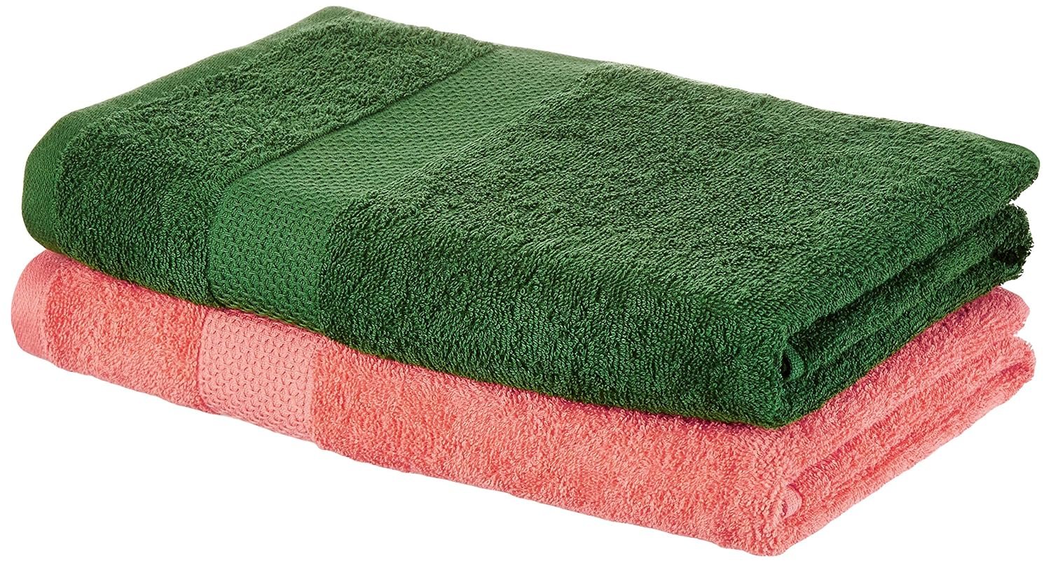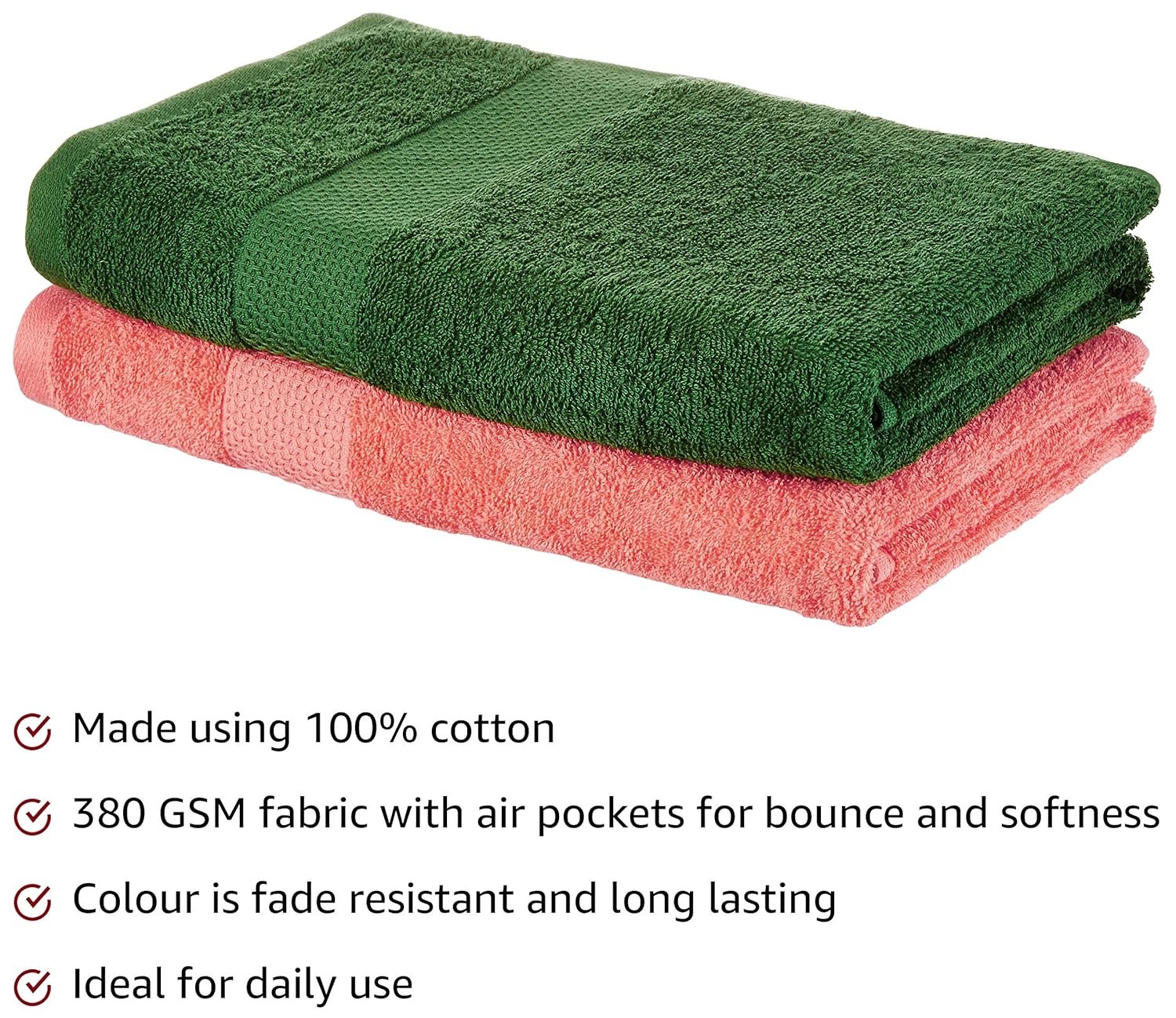 Amazon Brand – Solimo Cotton 2 Piece Bath Towel Set, 380 GSM (Coral Pink, Mint Green)