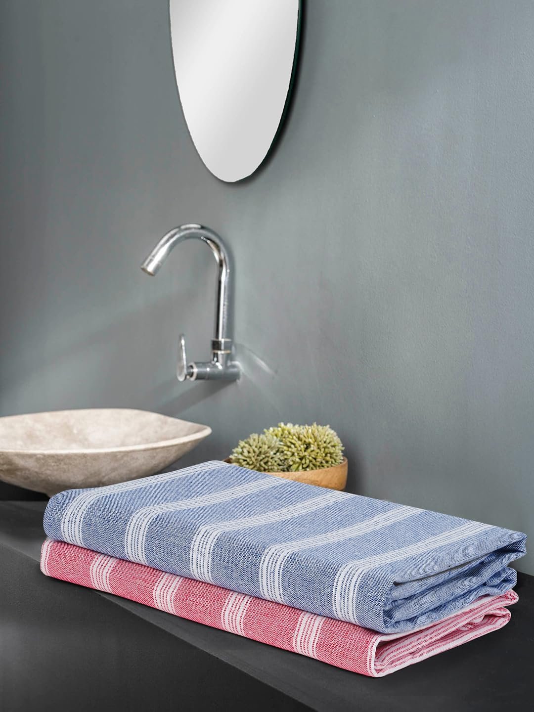 Amazon Brand – Solimo – Cotton Turkish Towel | Multicolour | Fade Resistant | Pack of 2 | Pink & Blue