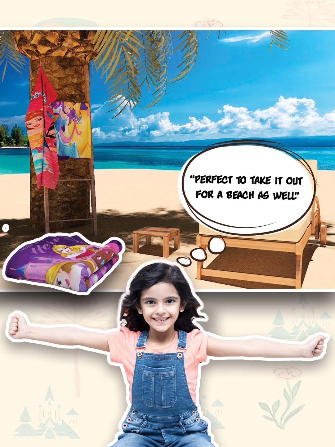 Athom Living Disney Group Kids Bath Towel 350 GSM (grams per square meter) 100% cotton material Size: 60 x 120 cm Multicolor design Features Disney-themed characters Suitable for kids\’ bath time or beach use