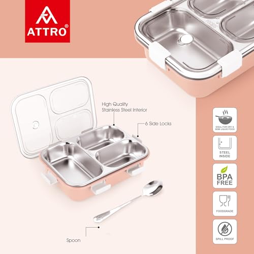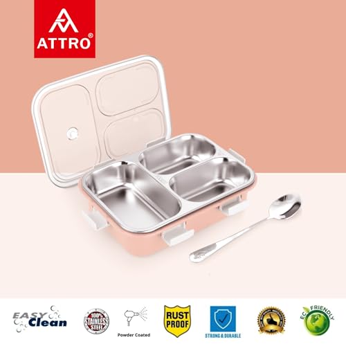 Be the first to review “Attro Bento 3 Compartment Stainless Steel Lunch Box with Steel Cutlery Inside, Heating & Water Insulation Design Use for Office, School & Travelling, 750 Ml – Pink”