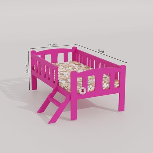 Aura Art Solid Wood Kids Bed Cot with Ladder | Wooden Single Bed for Kids Bedroom Furniture (Pink Finish)