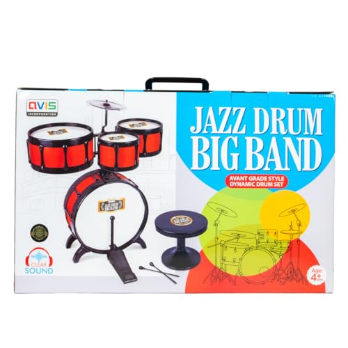 Avis Jazz Drum Big Band Musical Set, 56 cm Height, 4 Drums with Cymbal, Stool and Drumsticks, Drum Set for Kids of Age 4+ Years
