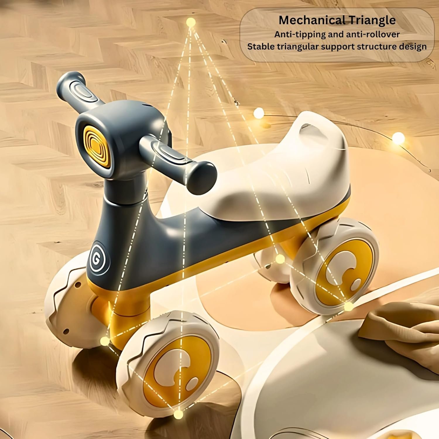 SAFETY DESIGN: Wide-set four-wheel base with non-slip wheels ensures stability and balance for beginning riders