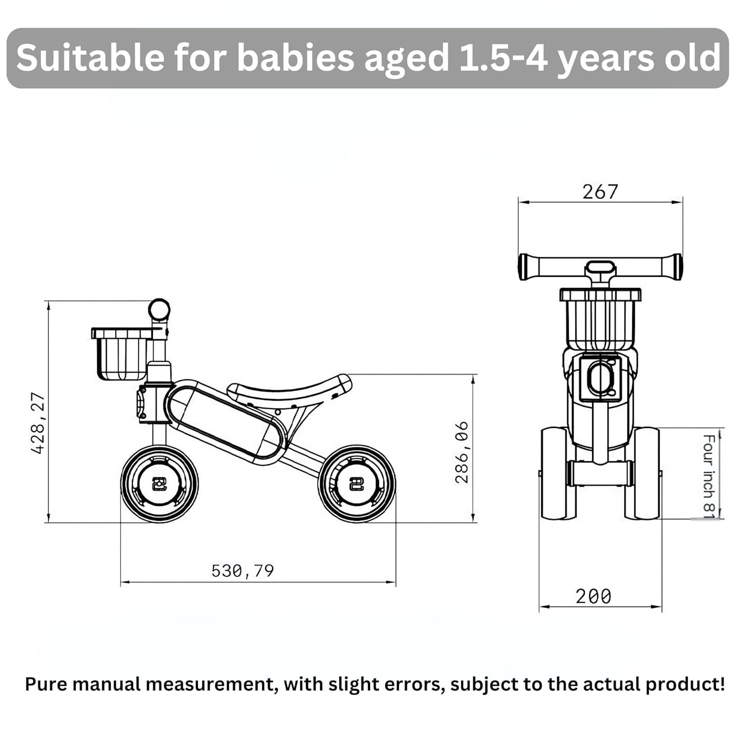 STRONG CONSTRUCTION: Thickened carbon steel frame, stronger load bearing capacity, comfortable and shock absorbing, not afraid of bumps with gifts for 1.5 year old. Four-wheel stabilized structure with low center of gravity design for your baby\’s safety. Baby bike weighing only 1.6 kg (3.6 lbs), both you and your child can carry kids balance bike easily!