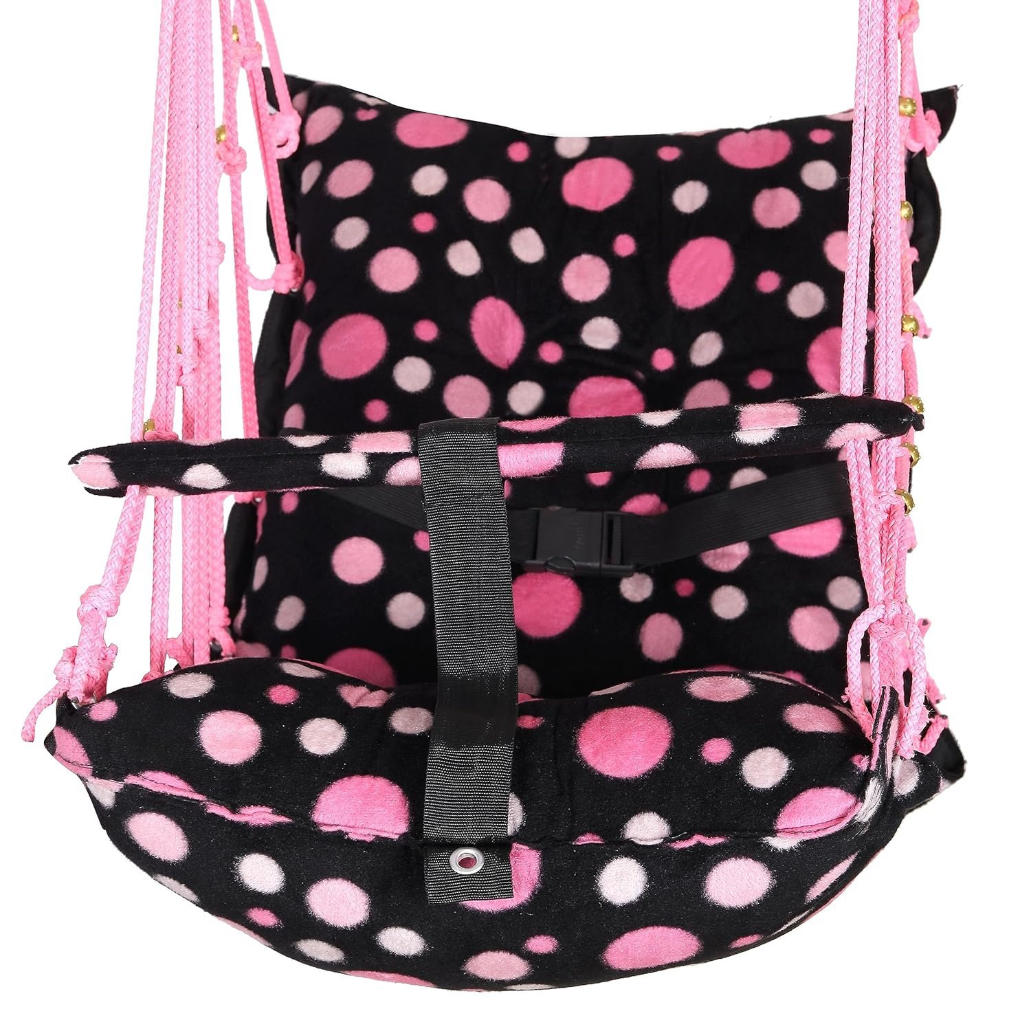 Baby Swing for Kids Cotton Swing Chair for Kids julla Baby\’s Children Folding and Washable 1-5 Years with Safety Belt/Home, Garden Jhula for Babies Cradle | (A. Pink Round)
