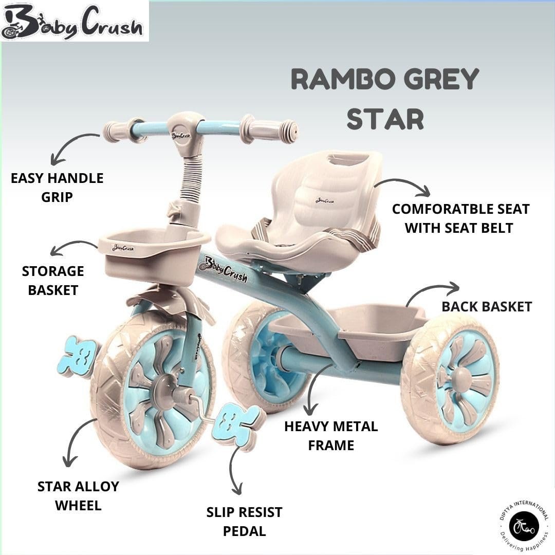 Babycrush Rambo Grey Star Tricycle for Kids 2-5 Years – Blue
