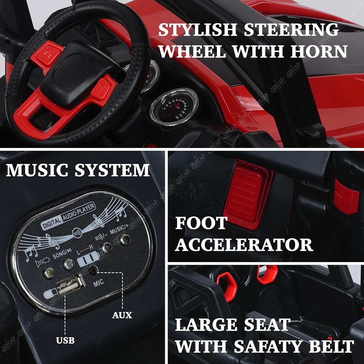 Battery Operated 4×4 Jeep for Kids, Ride on Toy Kids Car with Light & Music | Electric Jeep Battery Car | Baby Big Car for Kids to Drive 3 to 8 Years Boys Girls (Red)