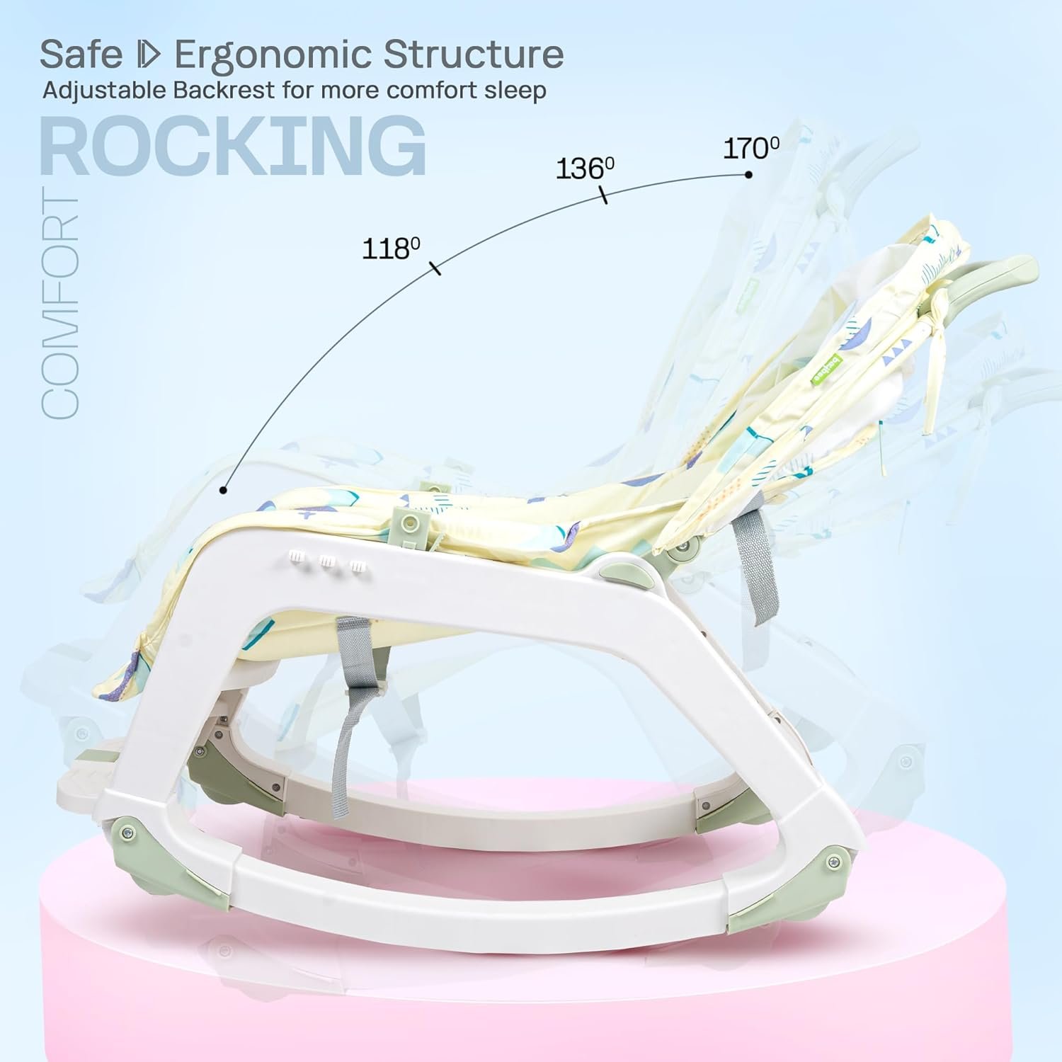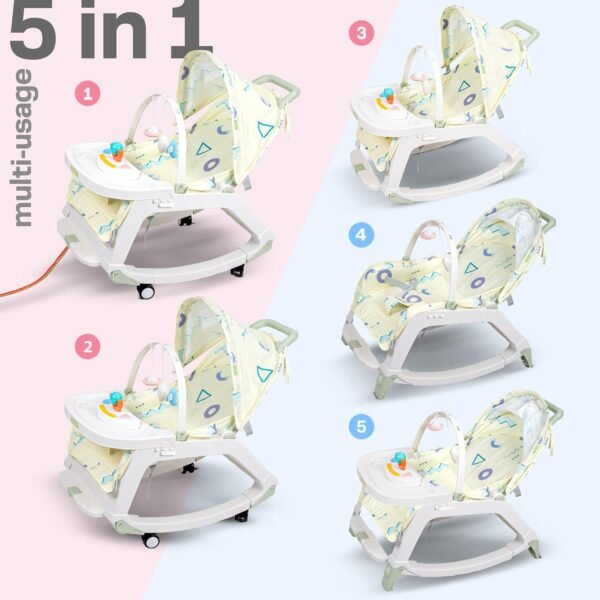 Baybee 5 in 1 Baby Rocker and Feeding Chair for Babies | Portable Rocking Chair for Kids with Parent Handle, Multi Position Recline, Food Tray & Music | Baby Bouncers 0 to 3 Years Boys Girls (Green)