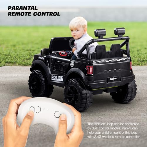 Baybee Bronco Police Edition Battery Operated Jeep for Kids, Ride on Toy Kids Car with Light & Music | Electric Jeep Battery Car | Baby Big Car for Kids to Drive 3 to 8 Years Boys Girls (Black)