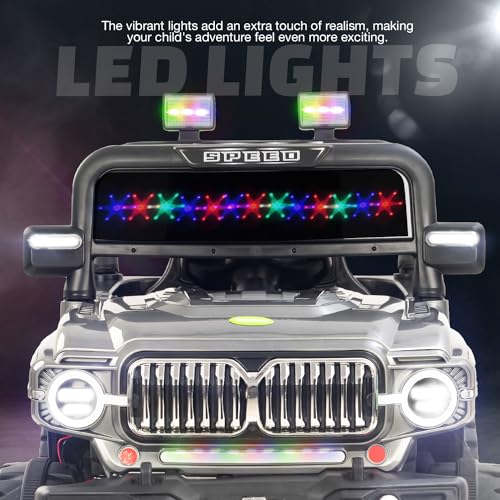 - bp 3- ? Safety Guaranteed for Peace of Mind: Engineered with safety in mind, this jeep features a powerful engine with a slow start, bright LED lights for nighttime visibility, and a steering wheel that carefully adjusts the car's direction to prevent overturning, providing a secure play environment.