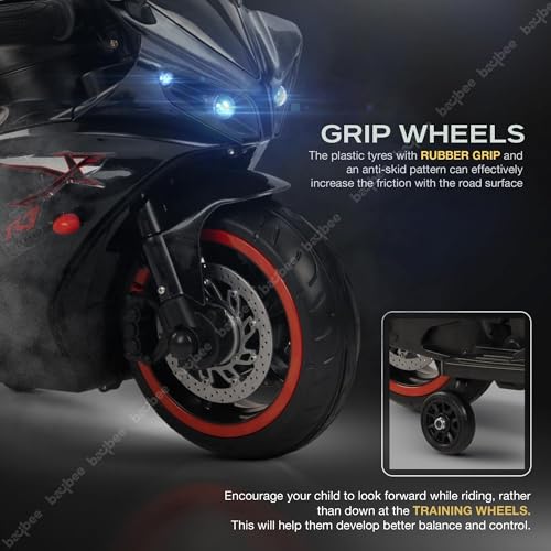- ? Built for Safety, Made for Adventure! ?: Safety first, fun always! Training wheels ensure balance, anti-skid tires provide steady traction, and dual LED lights light up twilight rides. The sleek, realistic design fuels imagination and excitement.