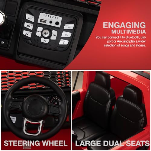 - ? Authentic Driving Feel: Built for an authentic experience, this Electric Jeep features realistic details such as a Speed Control Switch, horn, LED headlights, and multiple multimedia options including Bluetooth, USB, and Aux inputs, simulating the functions of a real car. The inclusion of double butterfly doors and a concealed charging port adds depth to the immersive driving experience.