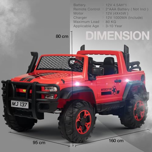 Baybee Rampage India’s Biggest 4×4 Battery Operated Jeep Car for Kids, 2 Seater Ride On Toy Car with Music & LED Light | Electric Jeep for Kid to Drive 3 to 10 Year, Weight Capacity 80kg (Red)