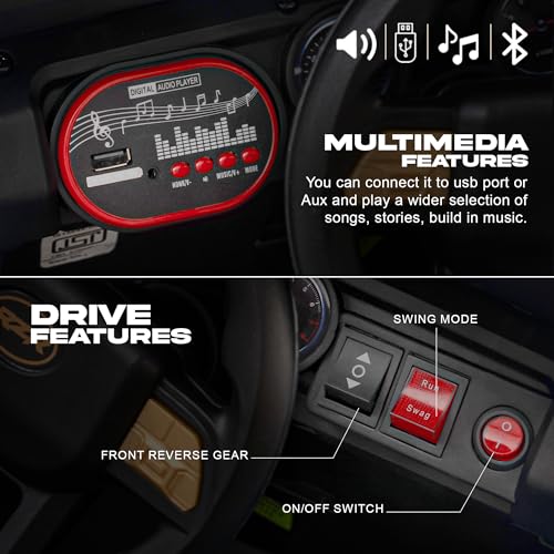 - ? Inbuilt USB, Music System & LED Lights for a Real Driving Experience: This rechargeable baby car comes with built-in USB, LED headlights, and a music system to offer a realistic driving feel. Your child can cruise around while listening to their favorite tunes, adding a level of joy and excitement to every ride in this ride-on electric jeep for kids.