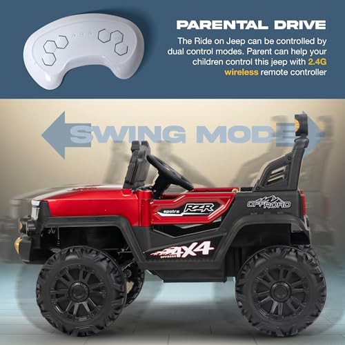 - ? Smart Design for Easy Controls & Safe Ride: Designed for young drivers, the Jeep features a foot pedal accelerator, steering wheel, and remote control for parental guidance, ensuring complete safety. The electric jeep for kids to drive also has a seat belt, speed control, and a smooth start system for a worry-free and safe experience for toddlers and growing kids.