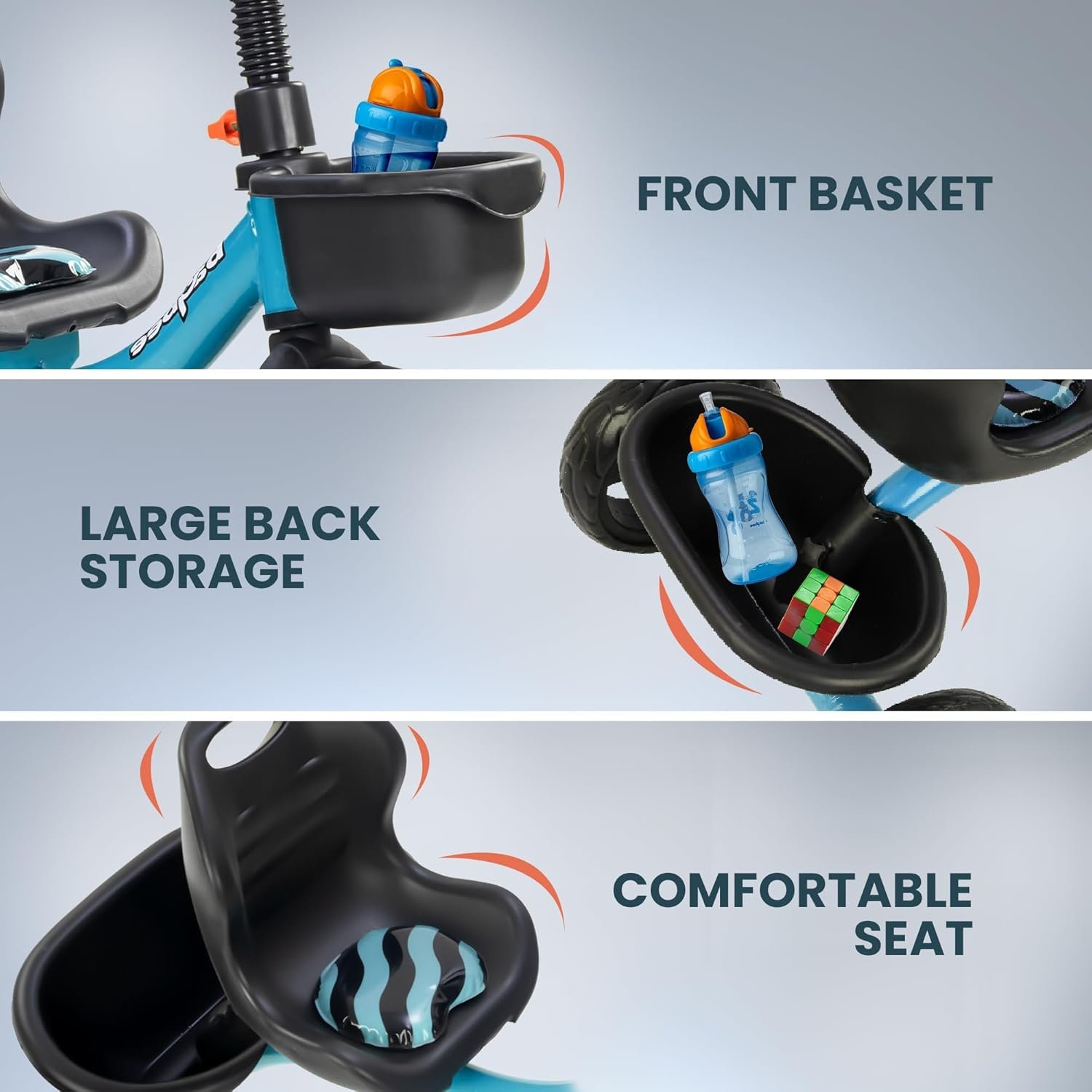 Baybee TRIGx Baby Tricycle for Kids | Smart Balanced Baby Trikes with Comfort Seat, Front & Back Storage Baskets & Eva Wheels | Children Bicycle for Kid | Kids Cycle for 2-5 Years Boy Girl (Blue)