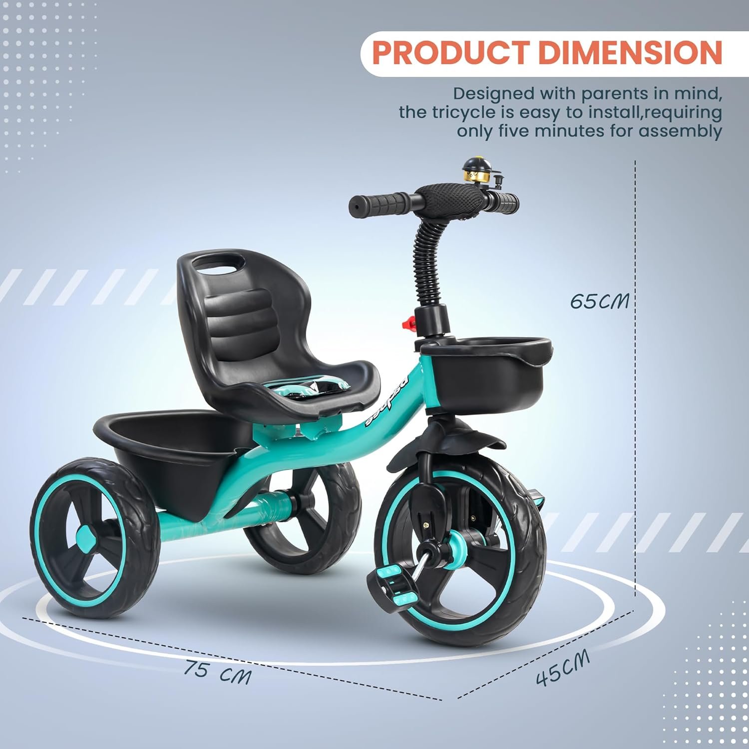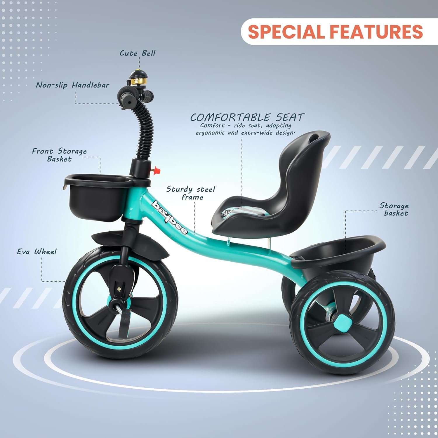 🚴♂️ Smooth & Safe Rides with Durable EVA Wheels: The EVA wheels on the Baybee TRIGx Trike offer superior grip, shock absorption, and durability on a variety of surfaces. Whether riding on tiles, pavement, or grass, your child gets a stable, bump-free ride, making this children’s bicycle perfect for both indoor and outdoor play.