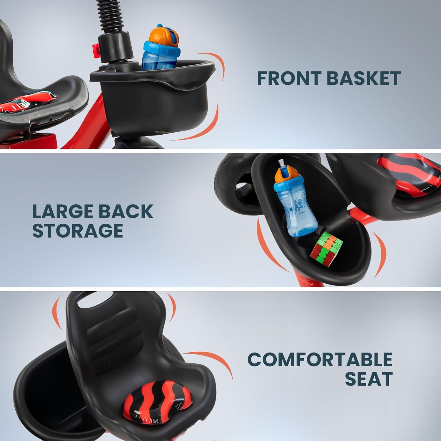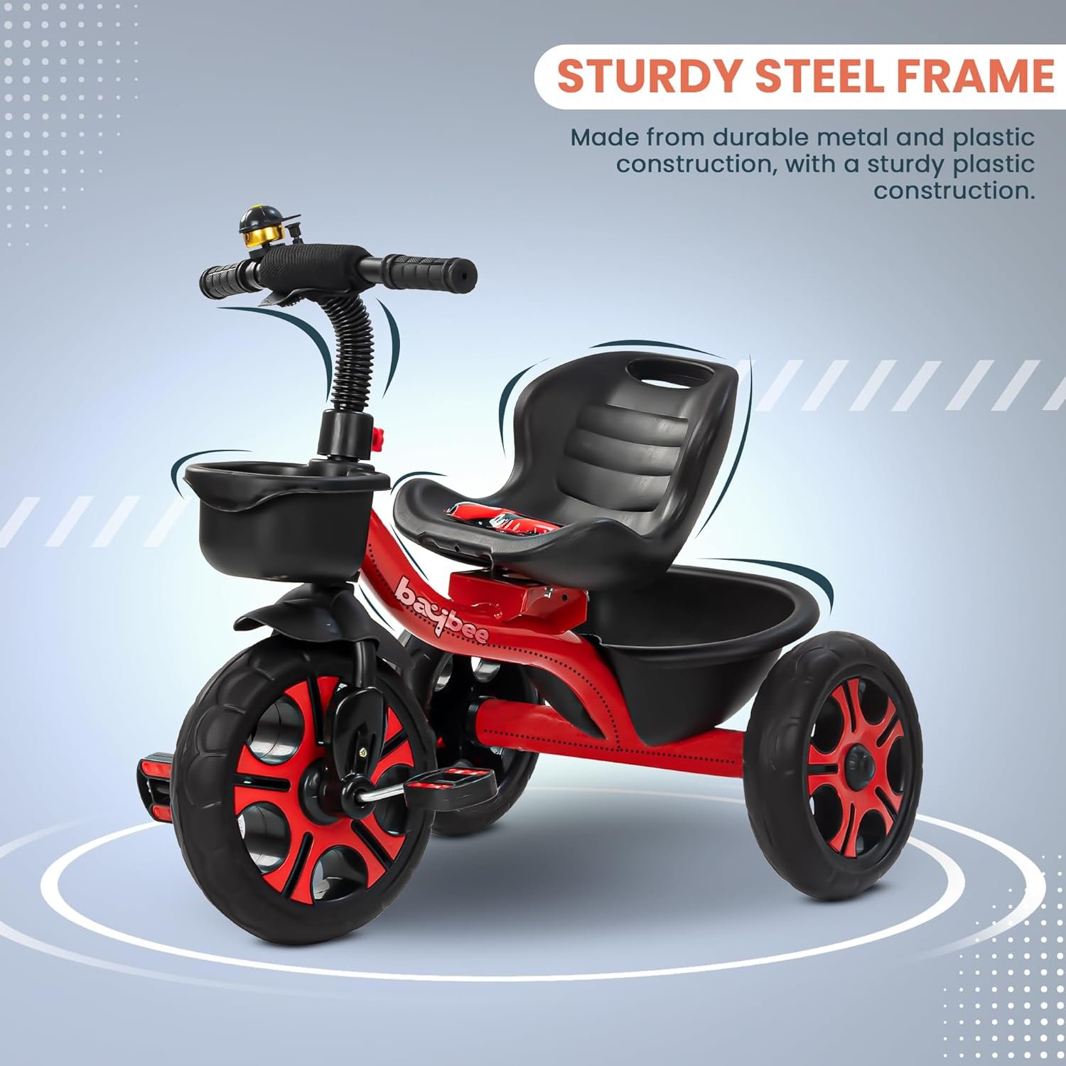 Baybee TRIGx Baby Tricycle for Kids | Smart Balanced Baby Trikes with Comfort Seat, Front & Back Storage Baskets & Eva Wheels | Children Bicycle for Kid | Kids Cycle for 2-5 Years Boy Girl (Red)