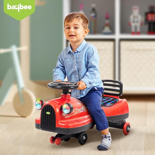 Baybee Trio Baby Swing Car for Kids | Twister Ride on Toy Kids Car with 360° Rotation, RGB Lights, Music & Seat Lights | Push Ride on Baby Car | Magic Cars for Kid 3 to 8 Years Boy Girl (Red)