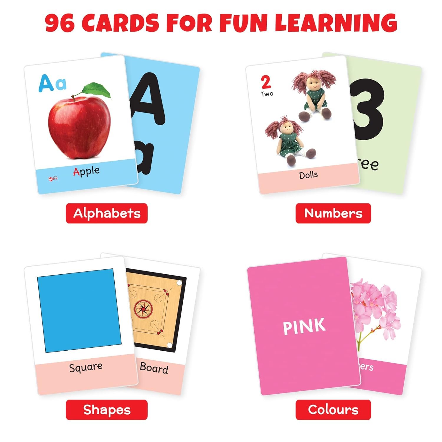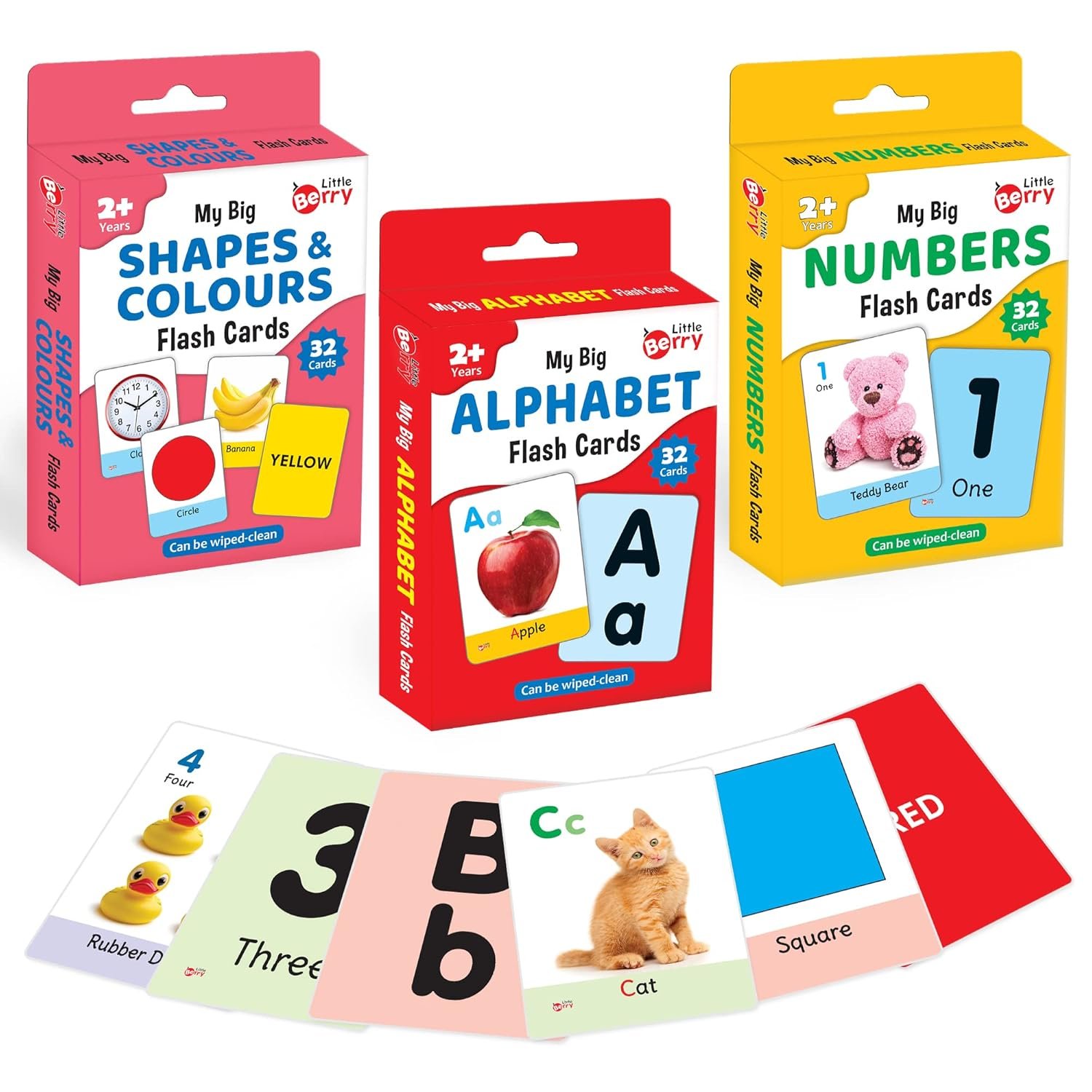 Big Flash Cards for Kids: Alphabets, Numbers, Shapes & Colours (Set of 3) | 96 Double-Sided Picture Cards | Early Learning and Development Toy for Preschoolers & Toddlers 2-6 Years