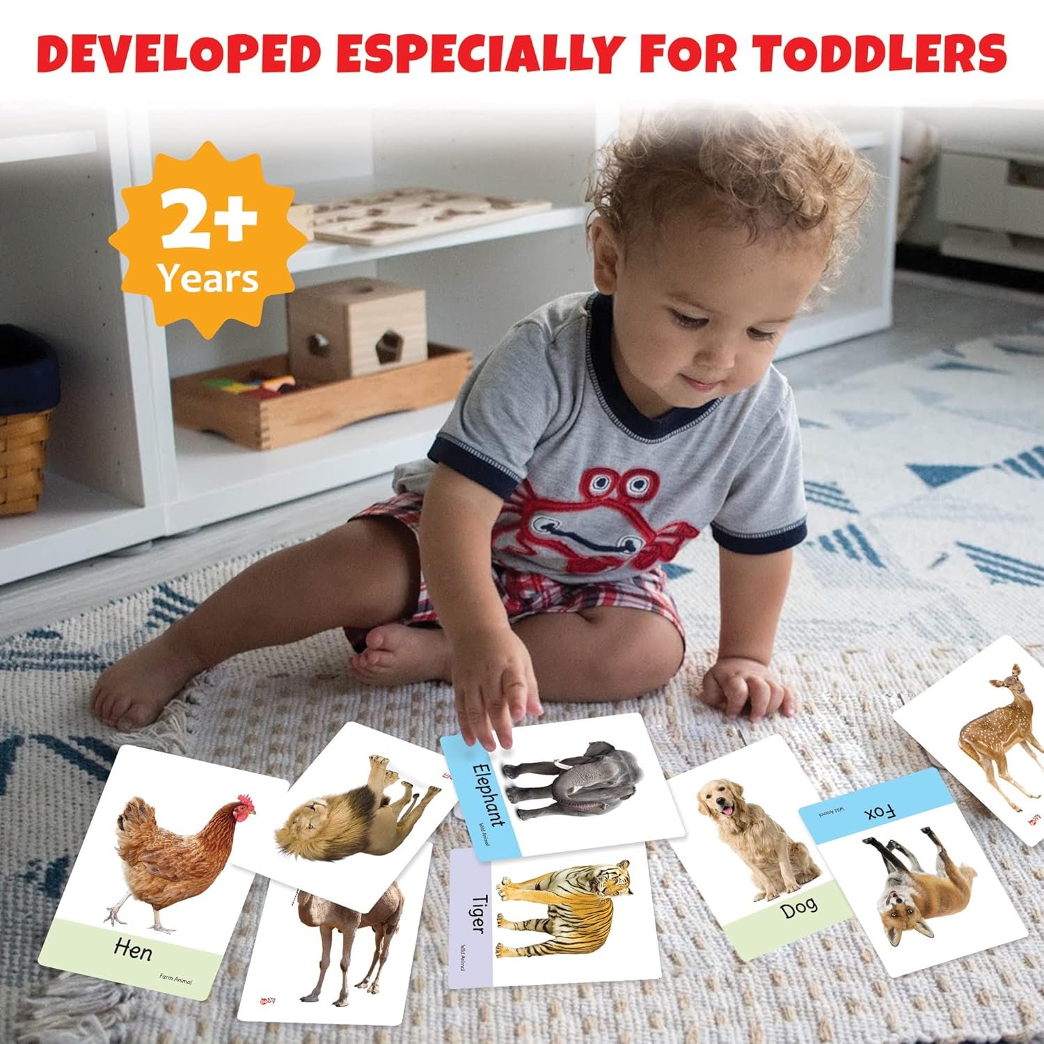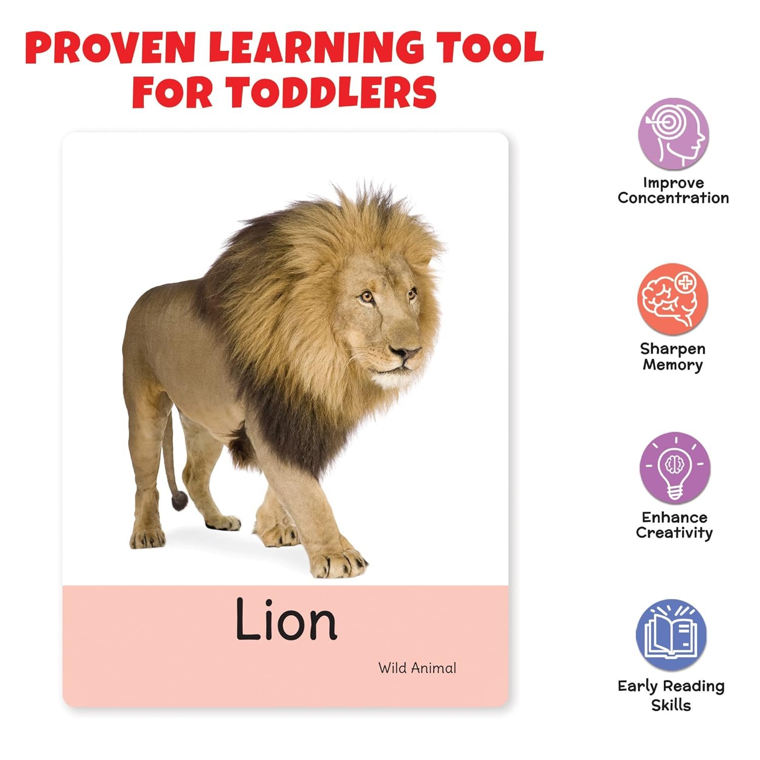 Big Flash Cards for Kids: Animals | 32 Double-Sided Picture Cards, Durable & Water Resistant | Early Learning & Development Toy for Preschoolers & Toddlers 2-6 Years | Can Be Wiped Clean