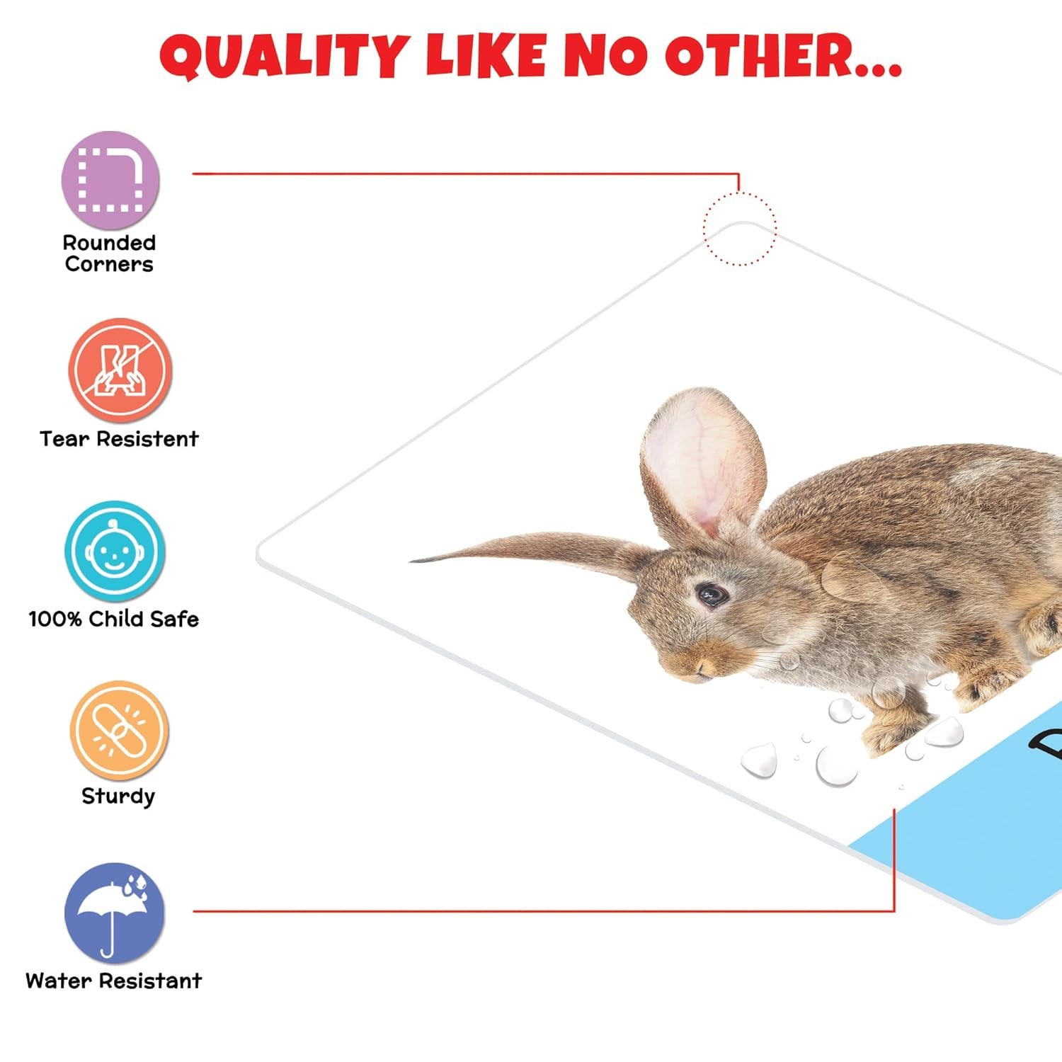 32 STURDY CARDS WITH ROUNDED CORNERS: The flashcards are water-resistant and tear-resistant to allow for long-lasting use. Laminated with non-toxic coating, these educational cards are 100% safe for children.