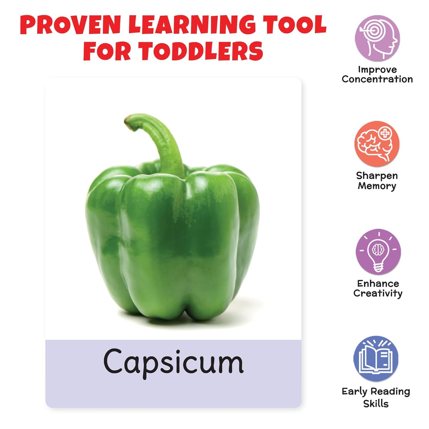 PROVEN LEARNING TOOL FOR TODDLERS 2 TO 6 YEARS: Little Berry’s flash cards set of 2 teaches all about different fruits and vegetables. It’s a proven learning tool to improve memory, concentration, build vocabulary and develop early reading skills.