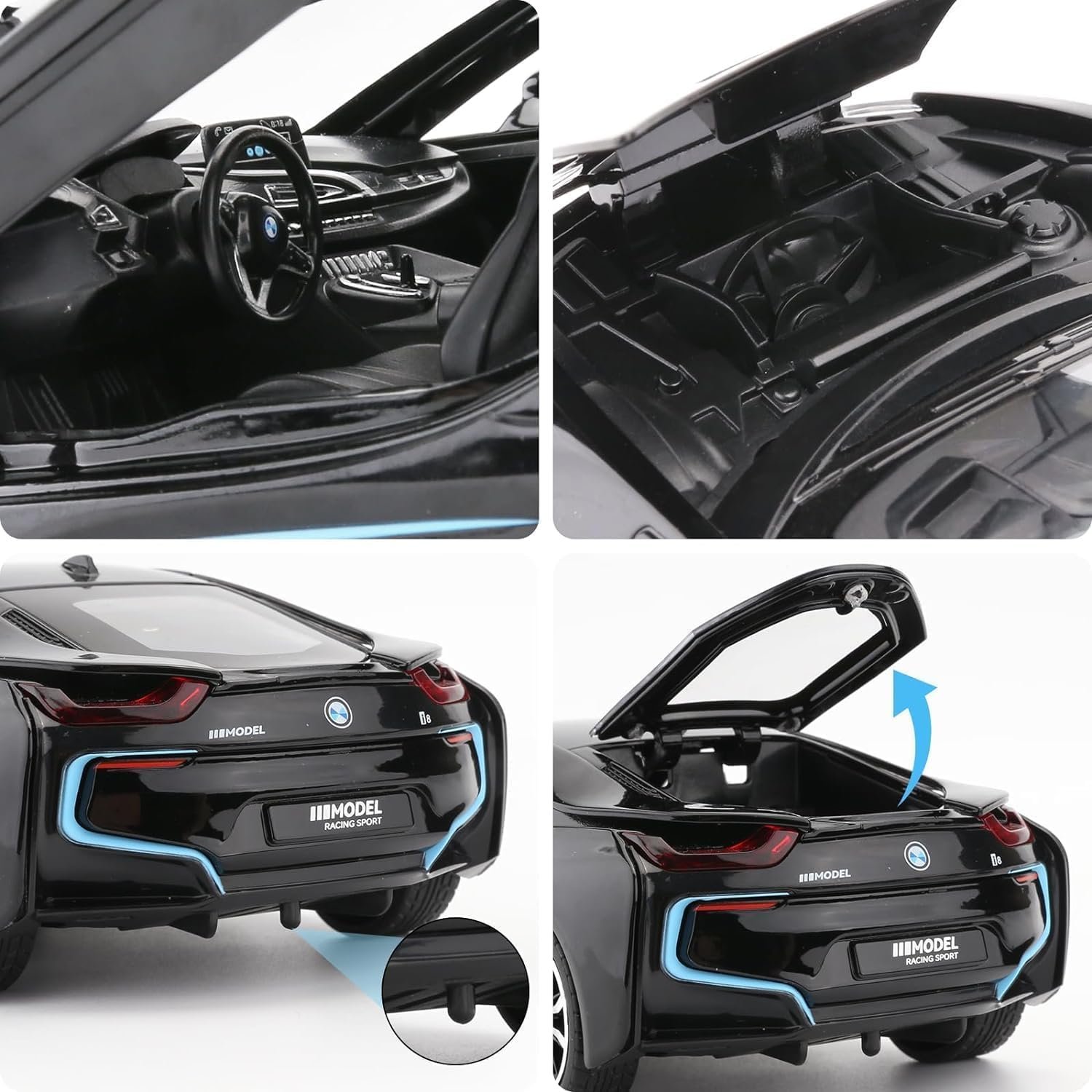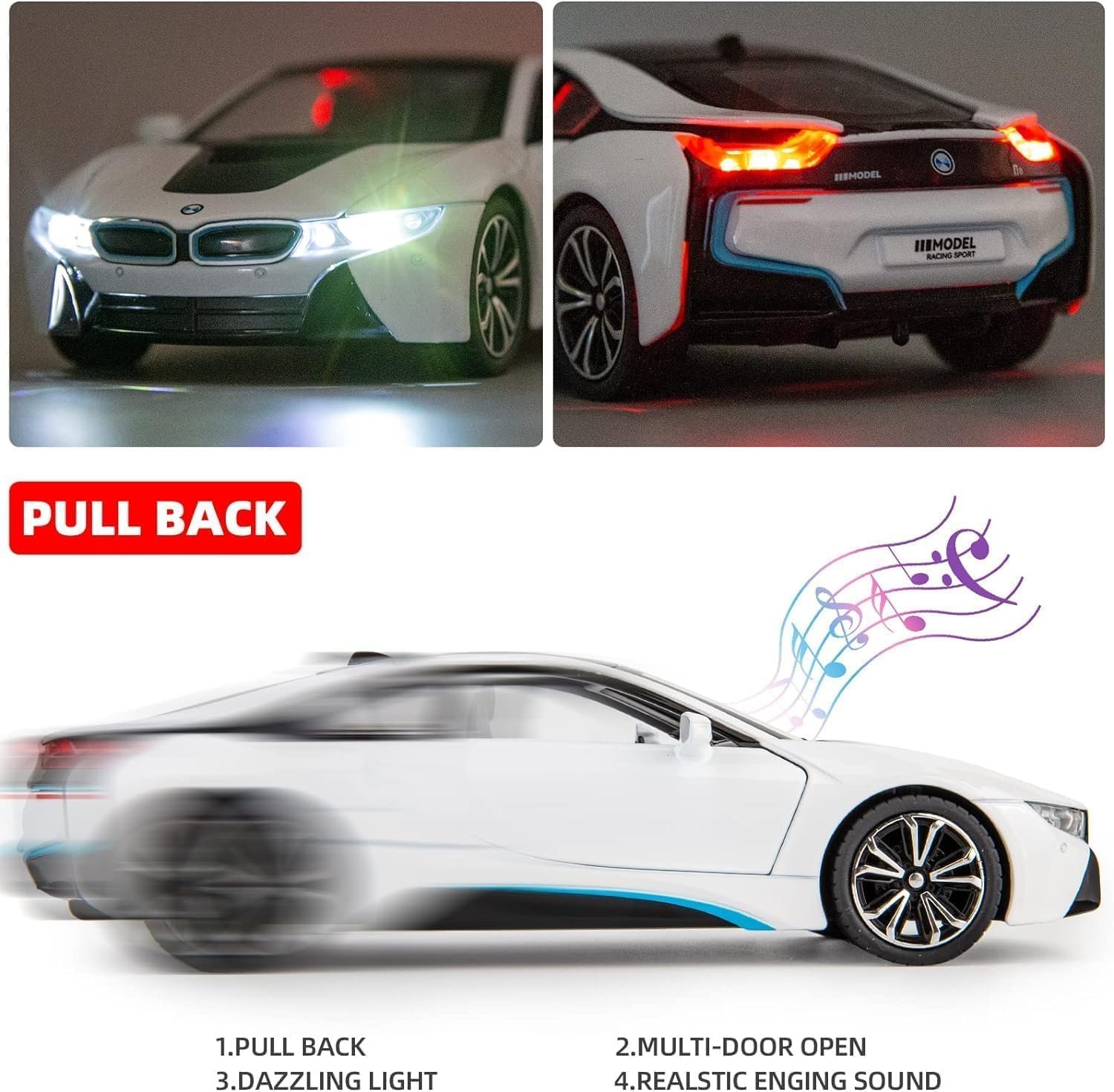 BMW I8 CAR Toy Car Metal Pull Back Diecast Car with Openable Door and Sound Light, Gifts Toys for Kids (Kids Toy Metal car White)