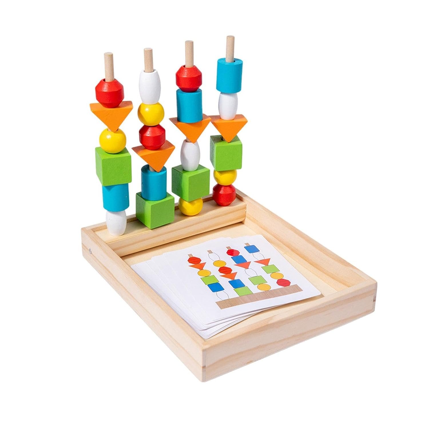 bnf® Montessori Wooden Beads Sequencing Toy Set Lacing Beads for 1 2 3 4 5 6 Kids
