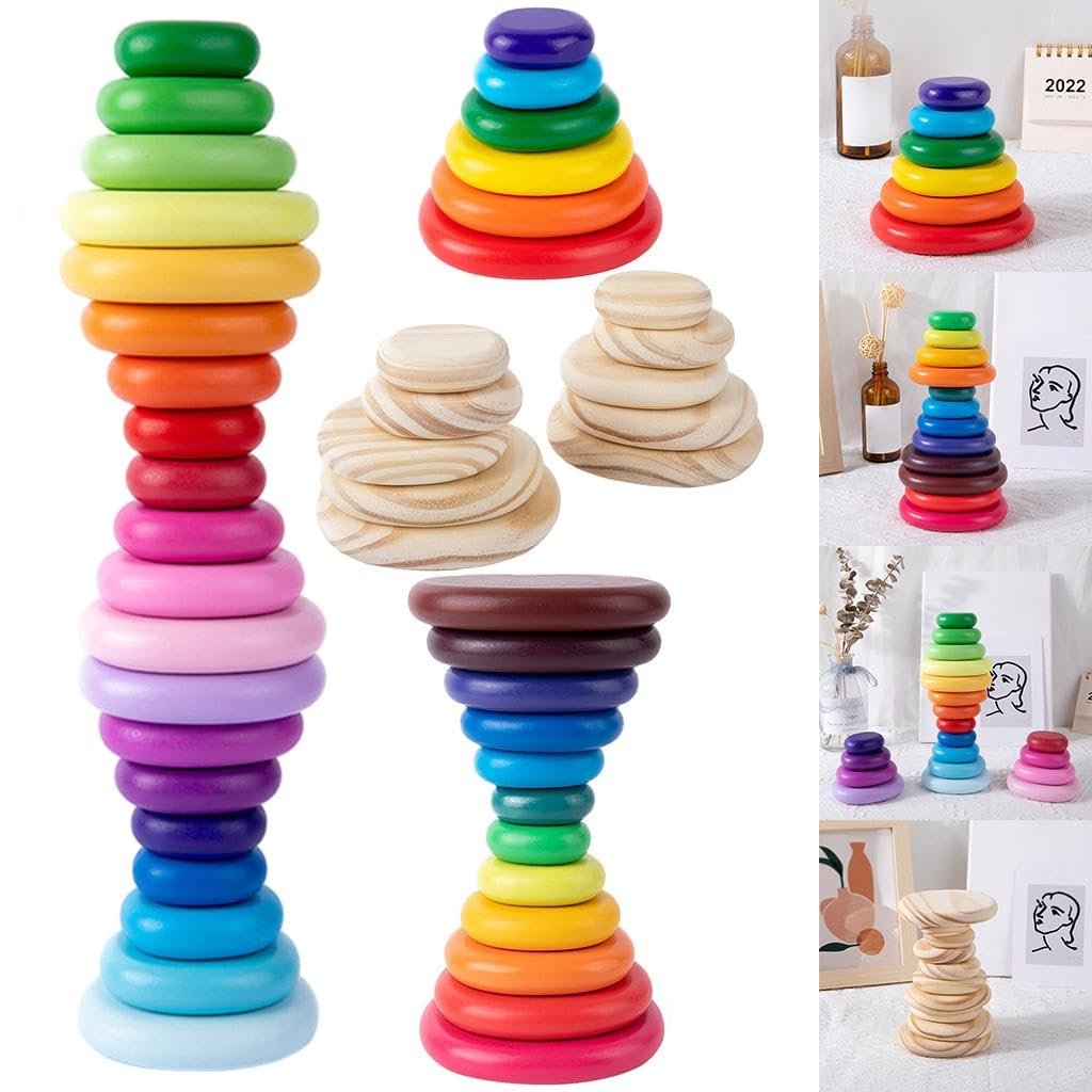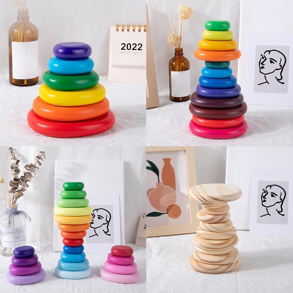 ✨This Stacker Features Brightly Colored And Smoothly Sanded Pieces That Help Kids Baby To Build Early Shape, Color, And Size-Differentiation Skills.