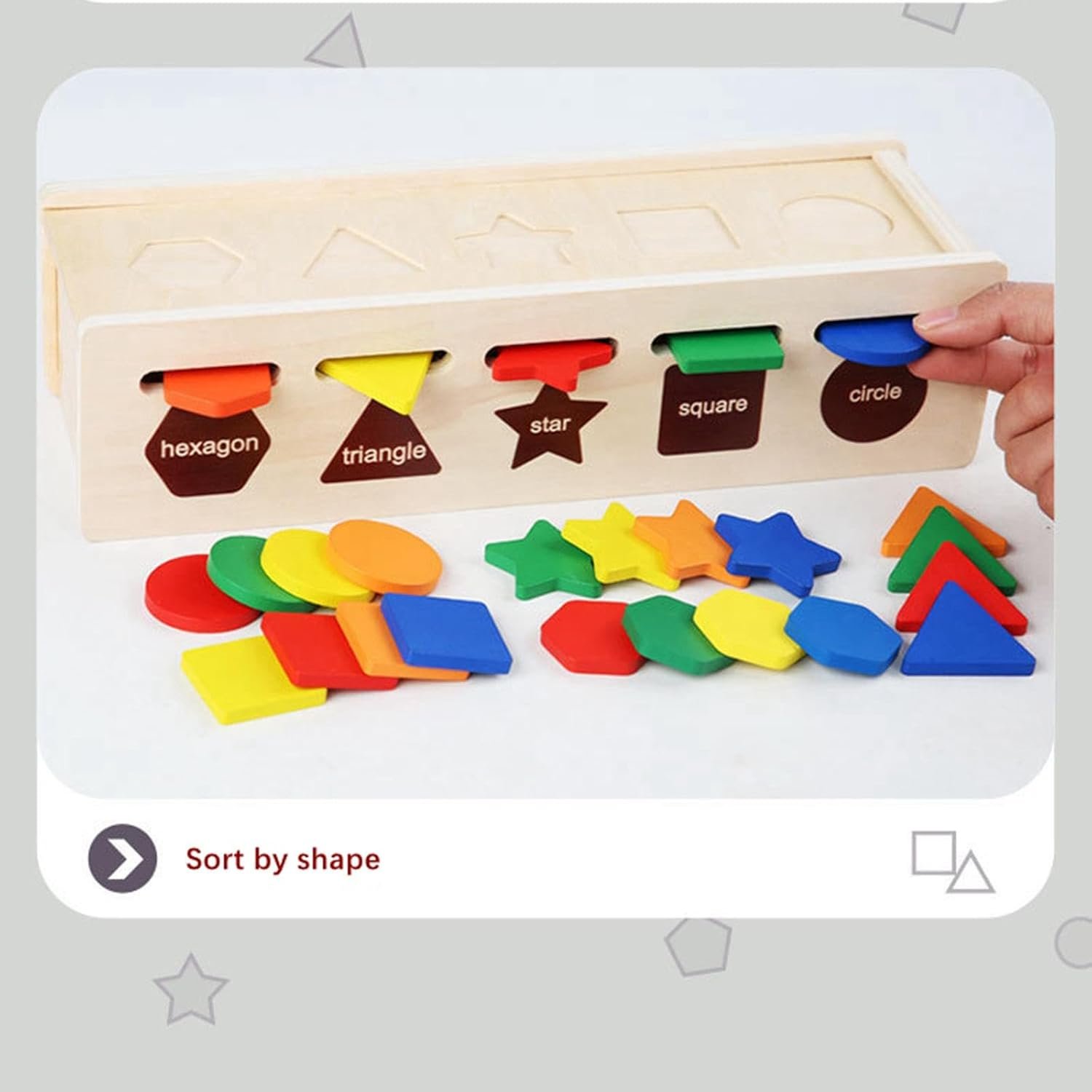 ✨Early Educational Toys : Geometric Shape Color Shape Sorting Toys With Cards And 25 Shapes Of Wooden Blocks, Let Kids Learn Different Color, And Recognize Shapes, Improving Hands On Cooperation.